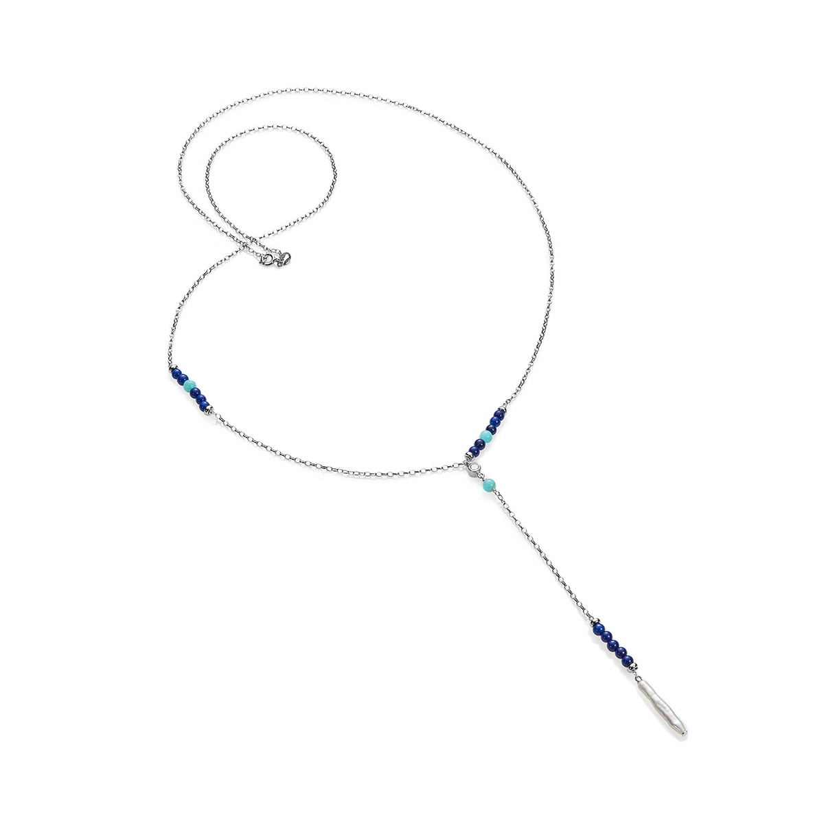 nasonpearl Бусы Ожерелье Уинстон из серого жемчуга, амазонитов и халцедона