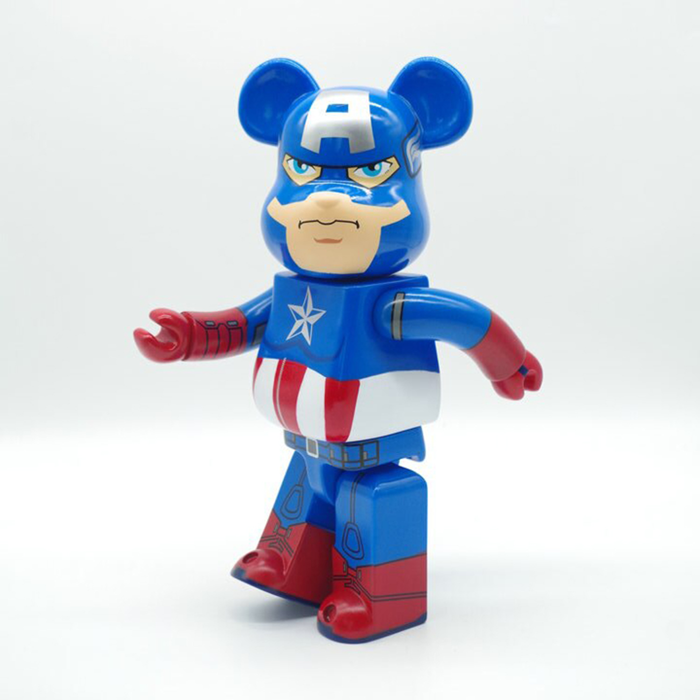 Дизайнерская статуэтка-игрушка "Bearbrick Captain America 400%" 28 см, сине-бело-красный