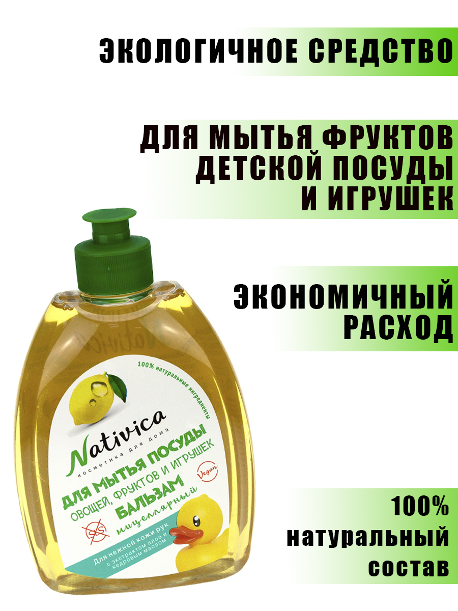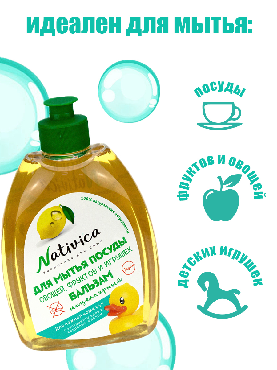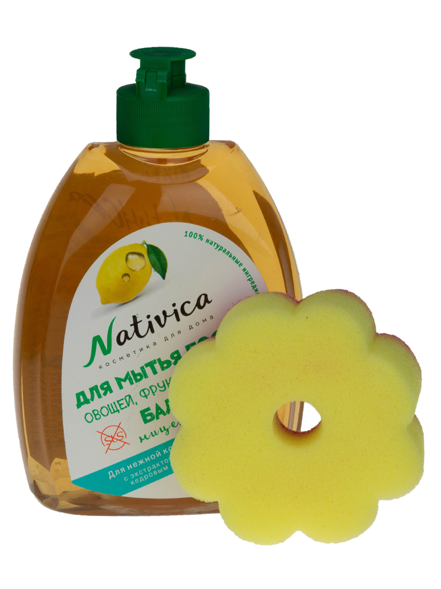 Средство для мытья посуды фруктов и овощей губка в подарок 400 мл. Nativica Для нежной кожи рук