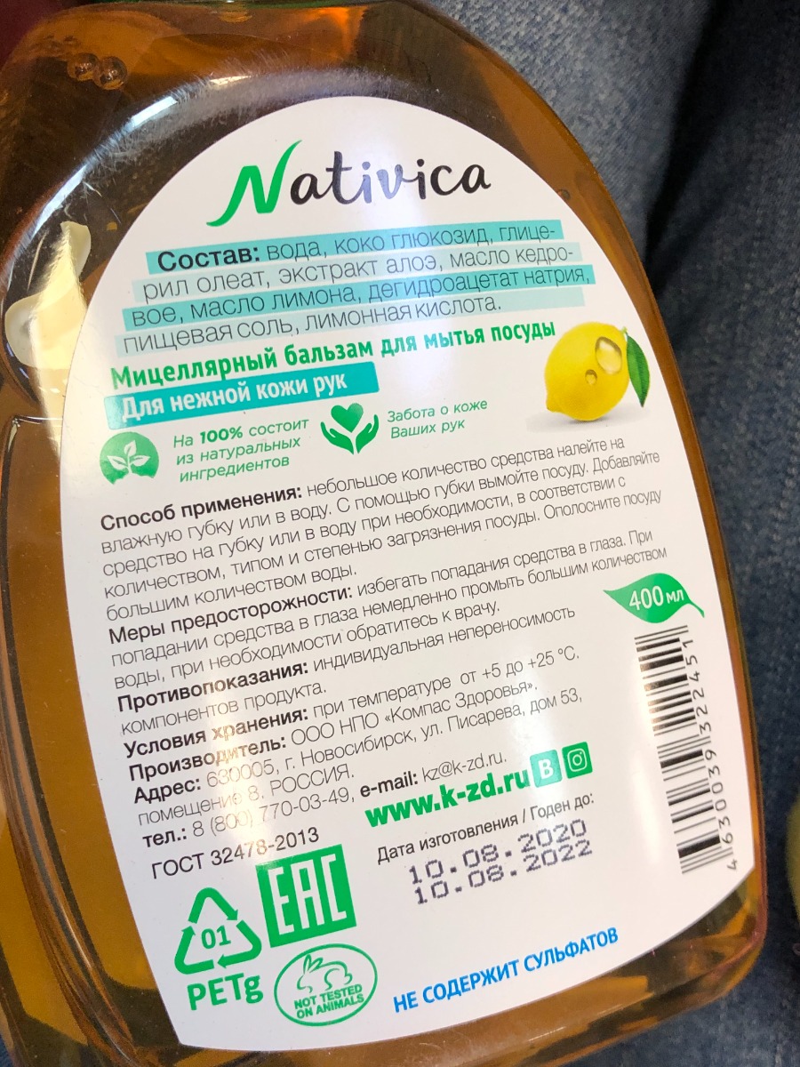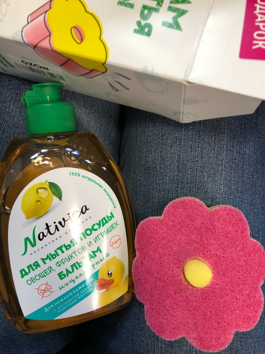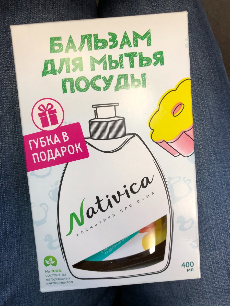 Средство для мытья посуды фруктов и овощей губка в подарок 400 мл. Nativica Для нежной кожи рук