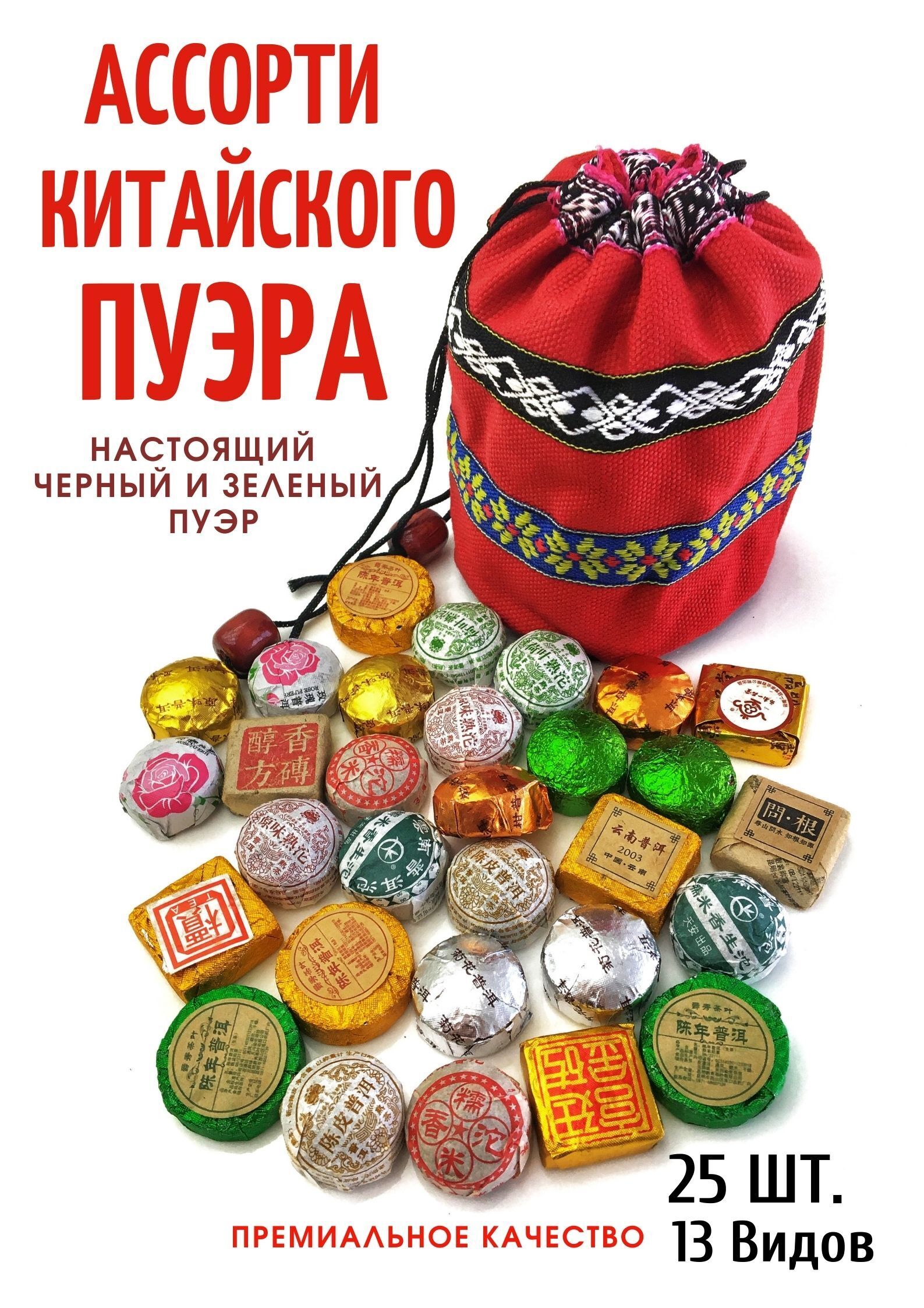 Премиальный Китайский Чай Пуэр мини тоуча, Ассорти зеленых и черных пуэров, 140 гр. / 25 шт.