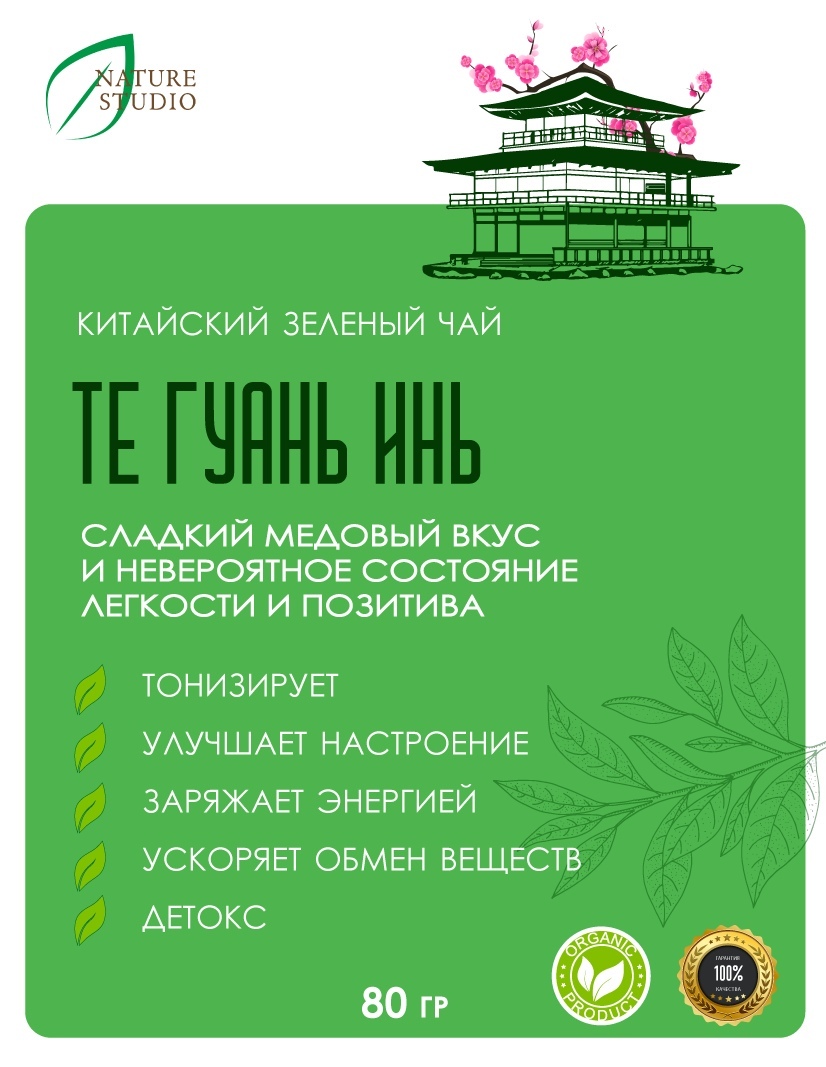 Настоящий Китайский крупнолистовой Зеленый Чай Те Гуань Инь Oolong, 80 гр.