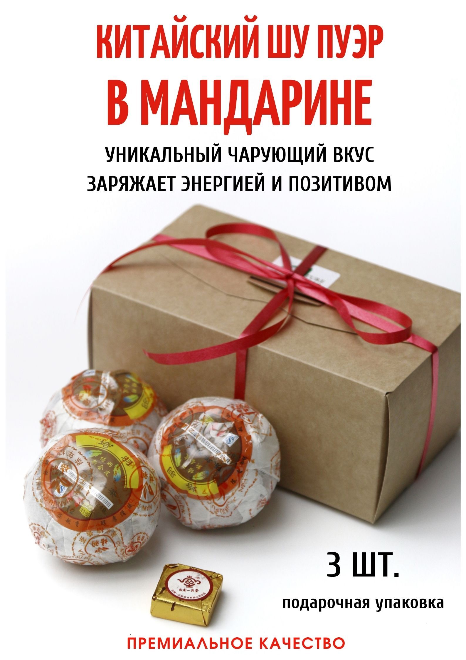 Премиальный Китайский Черный Чай Шу Пуэр прессованный ПУЭР В МАНДАРИНЕ, 85 гр./ 3 шт.