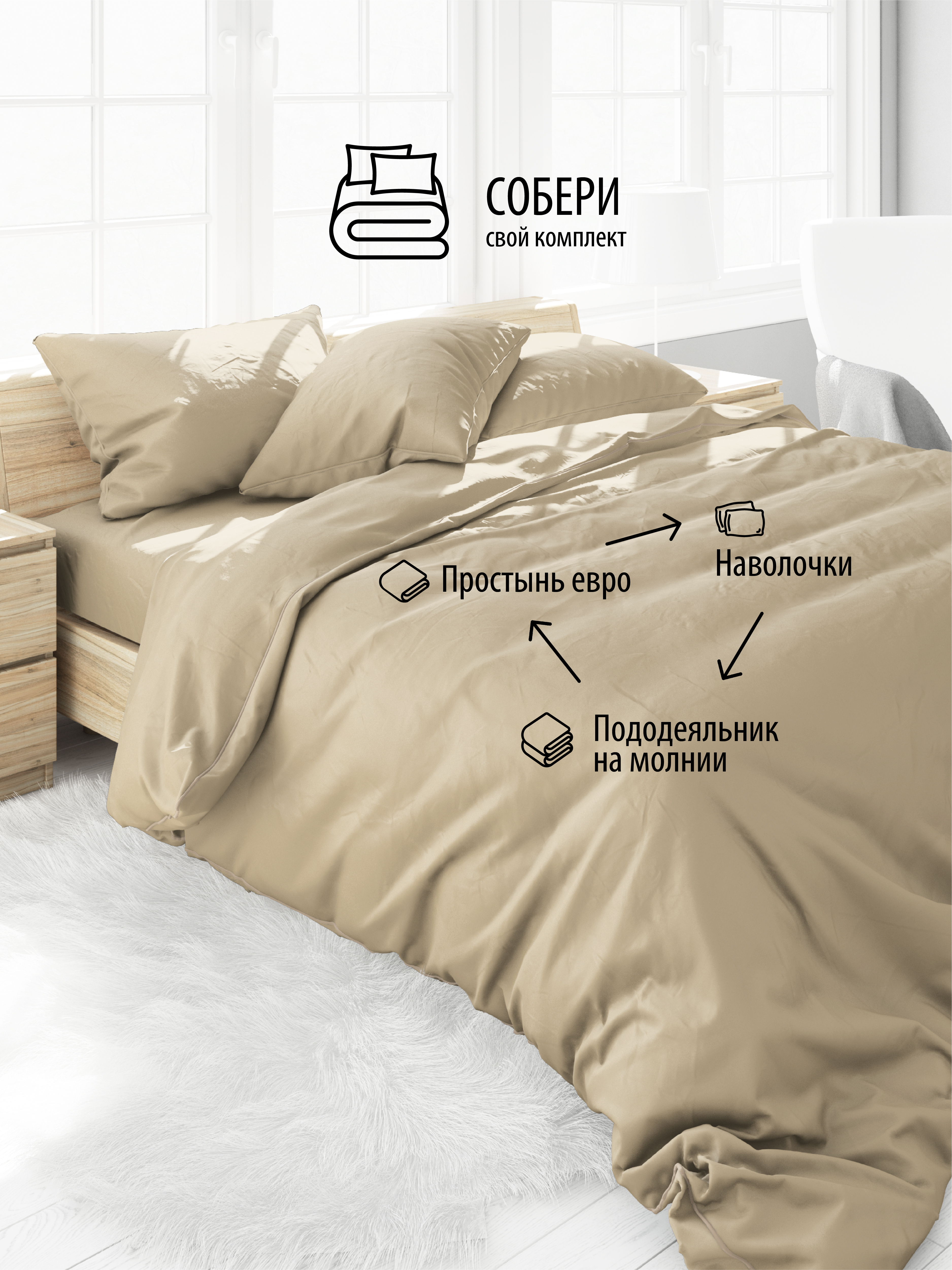 Пододеяльник Naunika Пастельная коллекция Сатин, Евро, 200x220