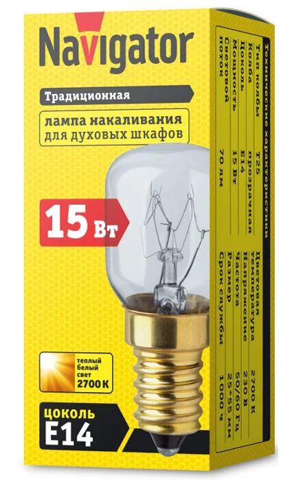 Лампа специальная Navigator 61207 NI-T25, Теплый белый свет, Накаливания