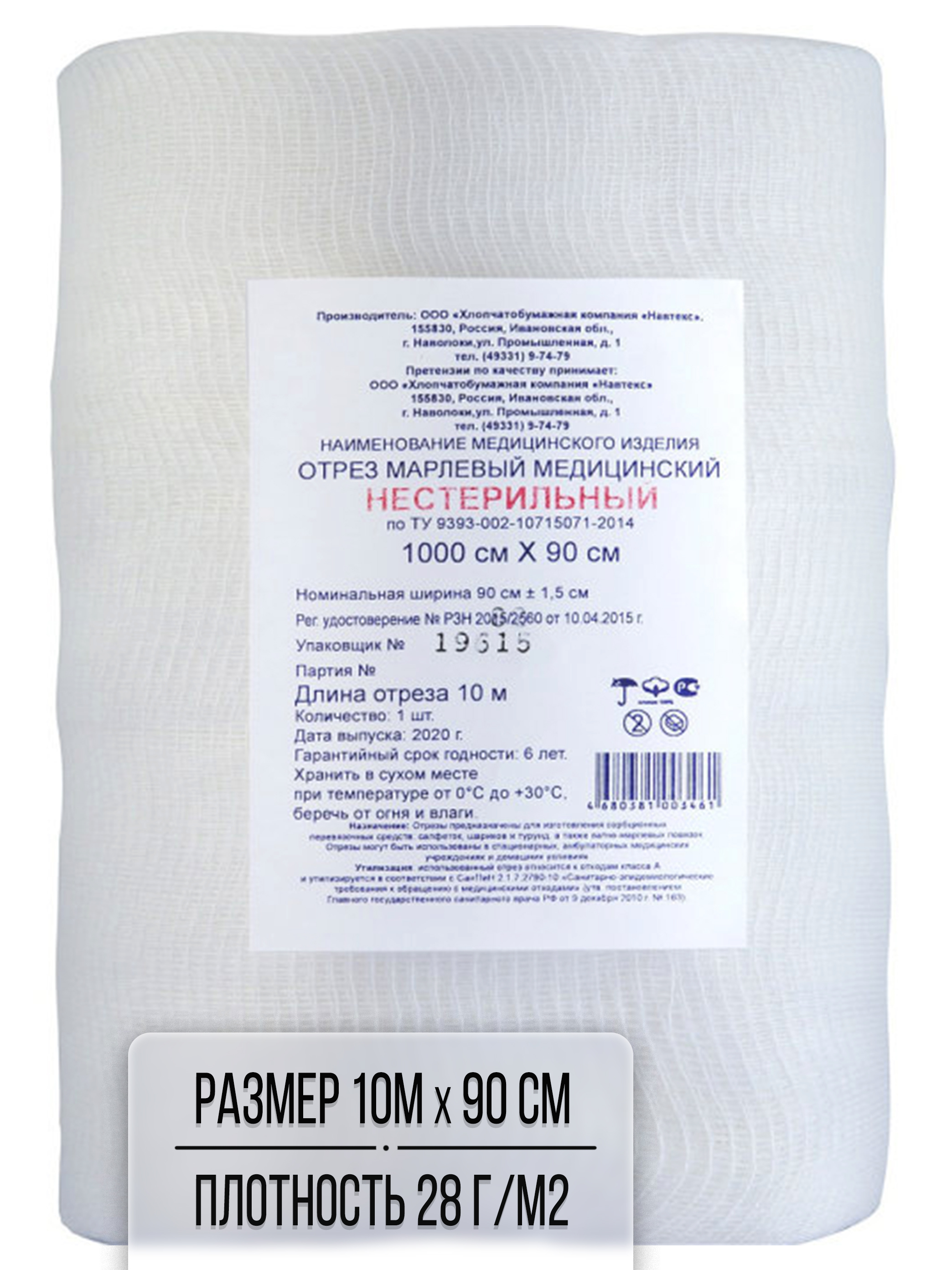 Марля медицинская Навтекс отбеленная, 10 метров, плотность 28 г/м