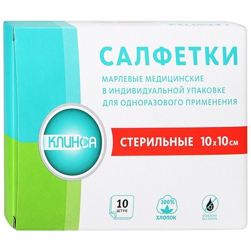 Салфетки марлевые мед стерильные Клинса 10х10см 12 сложений N 10 / 1 упаковка