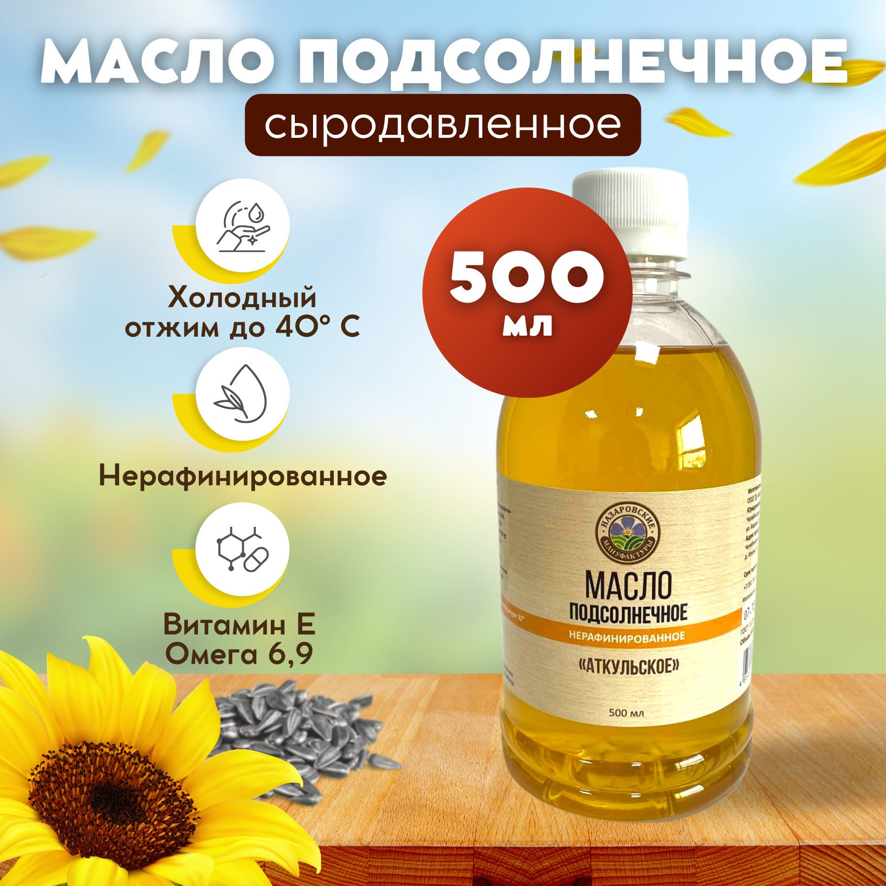 Масло подсолнечное нерафинированное высокоолеиновое масло 500 мл (0,5 л) , холодного отжима, сыродавленное