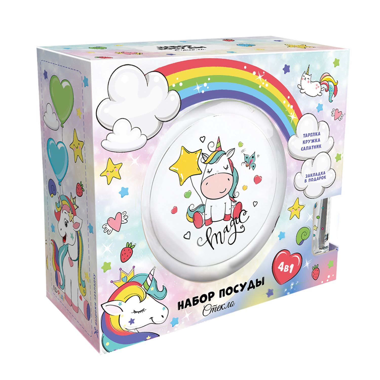 Набор детской посуды ND Play "Единорог" (3 предмета, подарочная упаковка, закладка) стекло