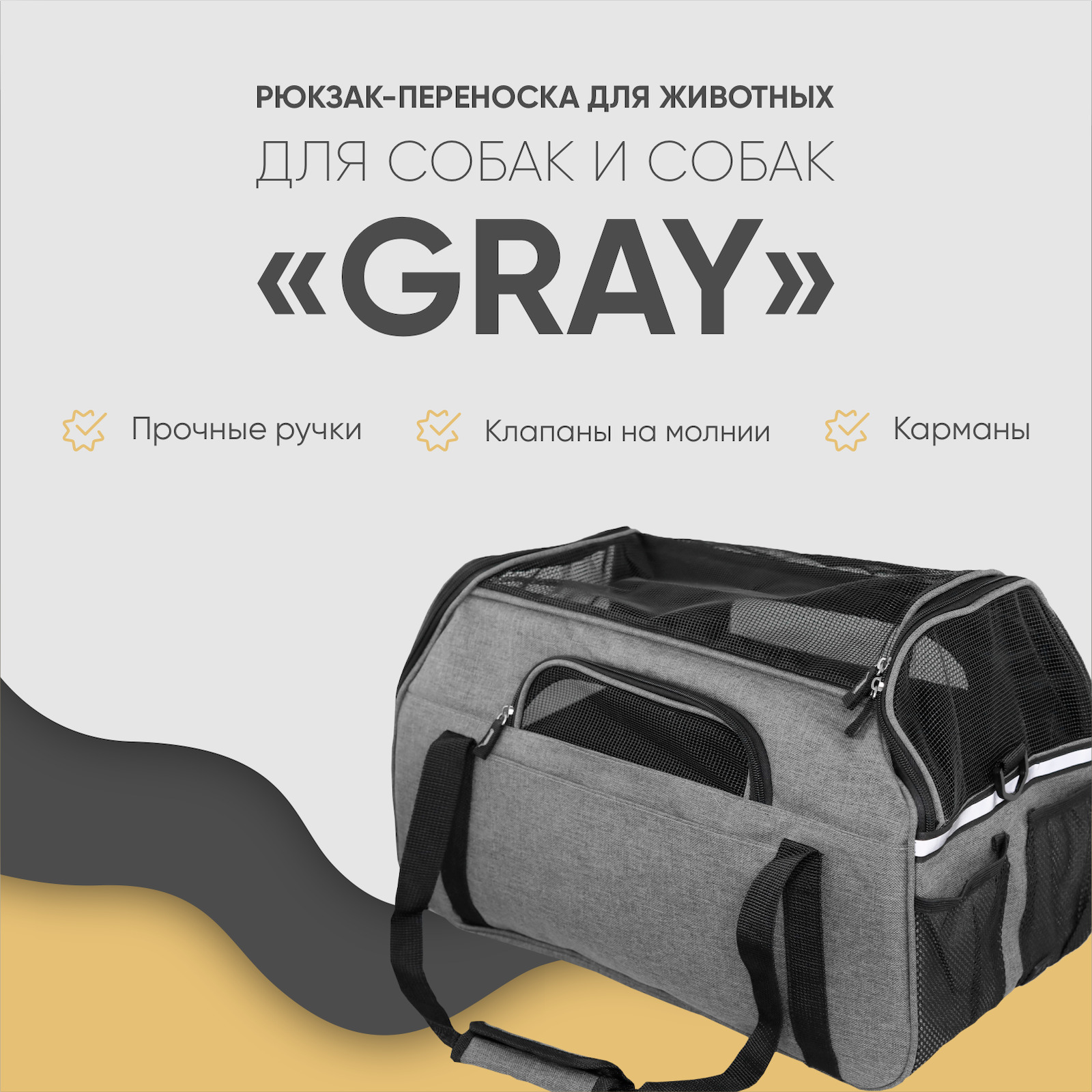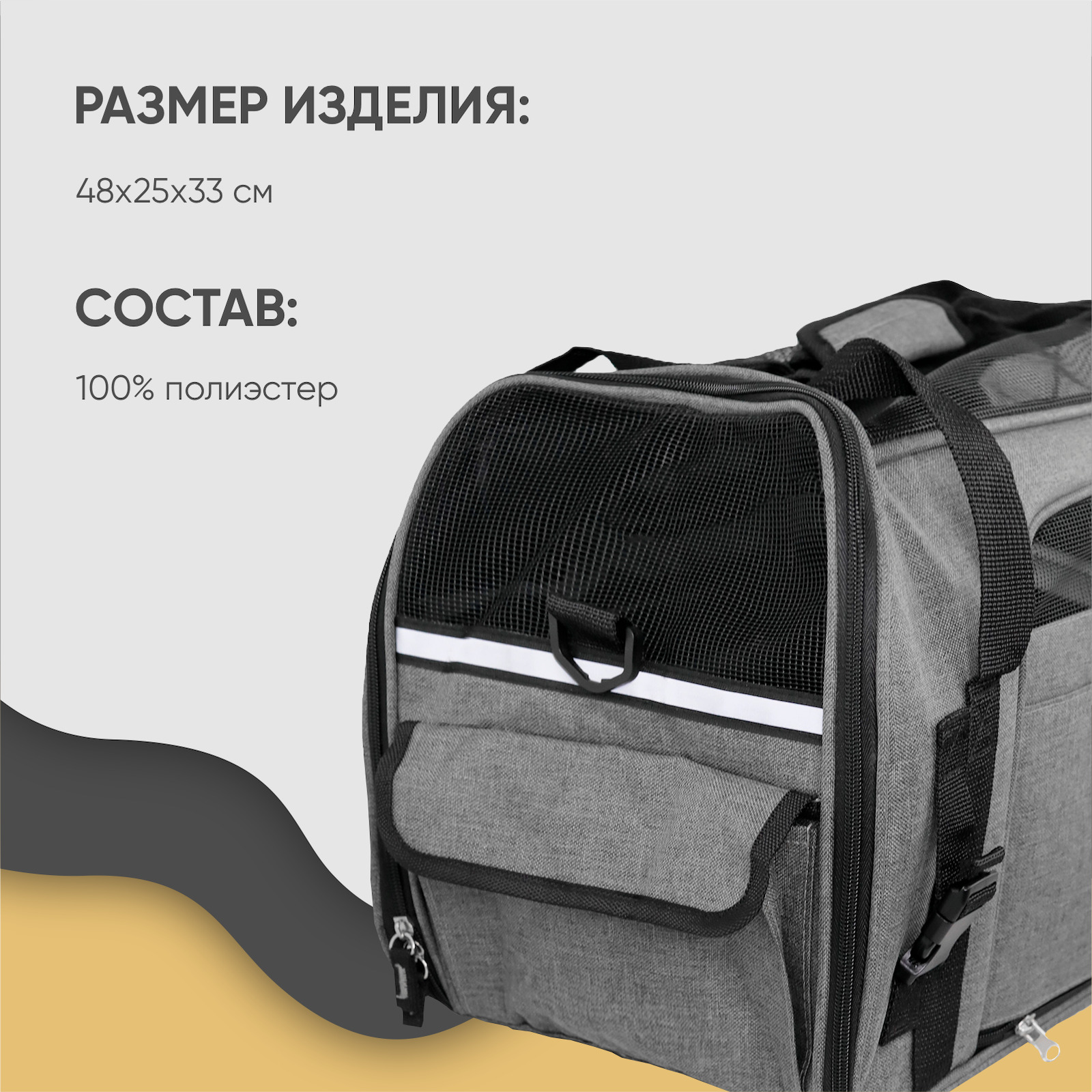 Сумка-переноска для животных, для кошек, для собак, "Не Один Дома" Gray, серый, 48х25х33 см