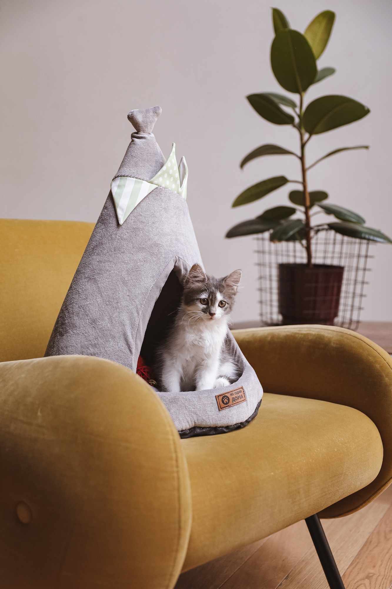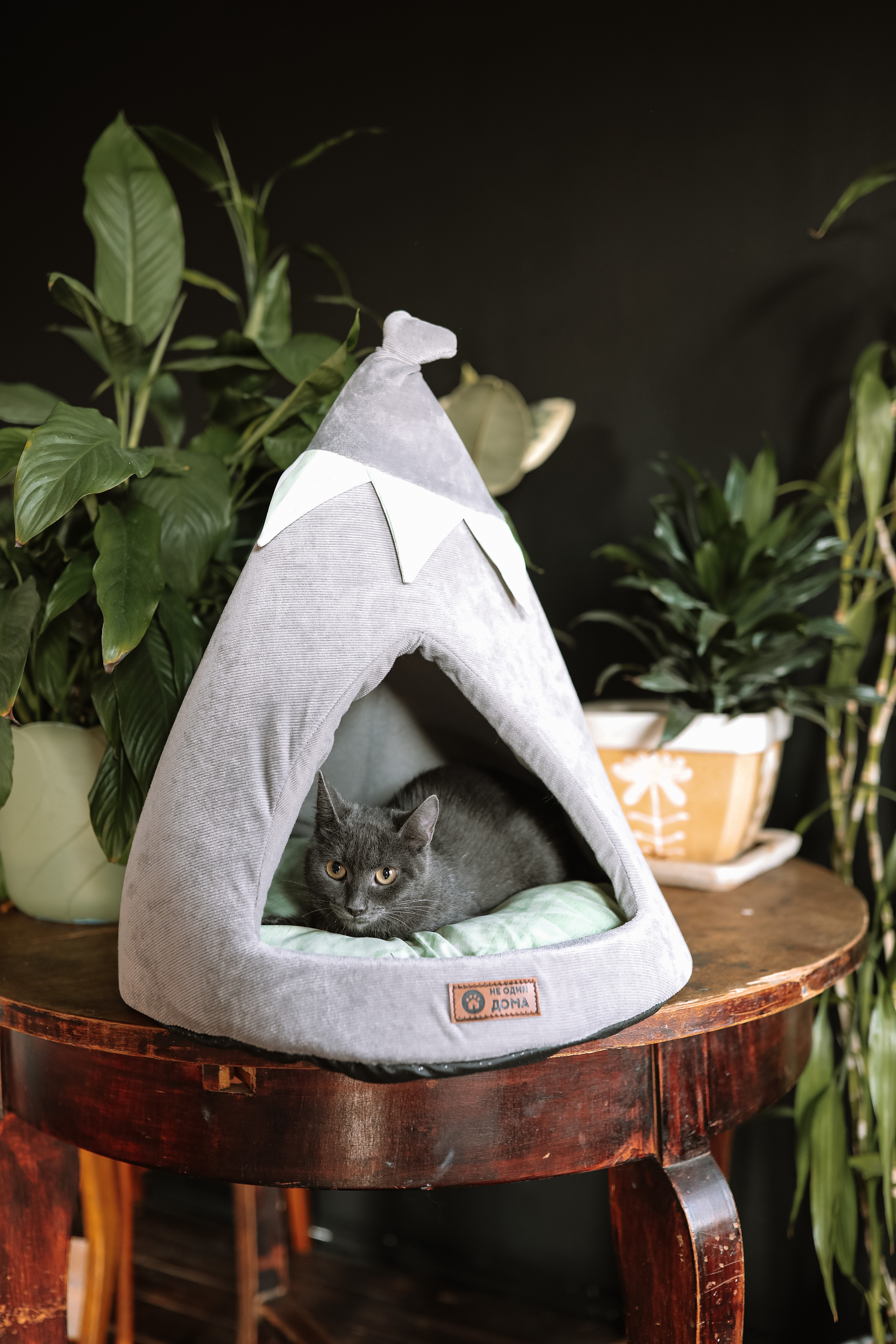 Домик для животных, для собак, для кошек, "Не Один Дома" Вигвам, серый