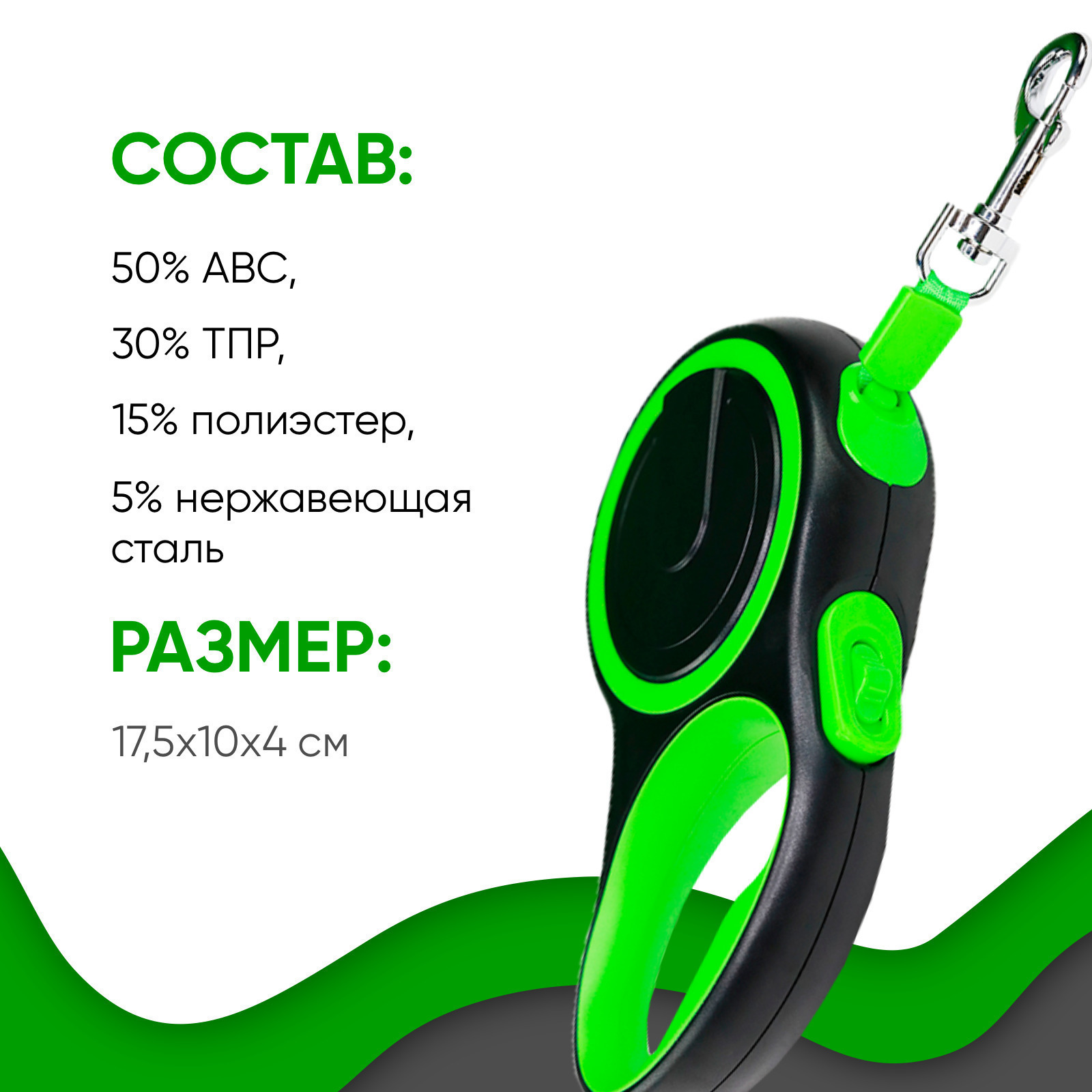 Поводок-рулетка для собак, "Не Один Дома" Моцион, зеленый, 5 м, 17,5х10,2х3,9 см