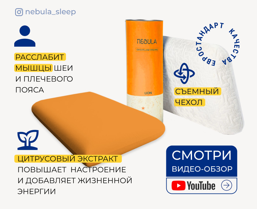 Анатомическая подушка, Ортопедическая подушка 40x60см, Nebula memory foam _1, высота 12 см