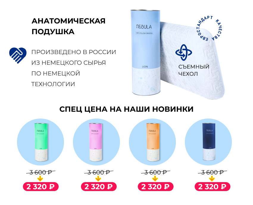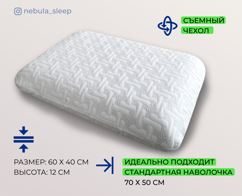 Подушка Nebula BS_AirFoam Вязкоэластичная пена, Анатомическая пена, 40x60 см