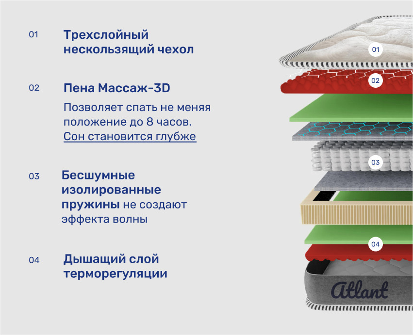 Матрас, Ортопедический матрас Nebula Atlant Stat Massage 160*200, Независимые пружины, 160х200 см
