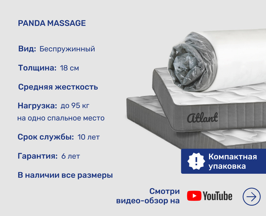 Матрас, Ортопедический матрас Nebula Atlant Panda Massage 80*200, Беспружинный, 80х200 см