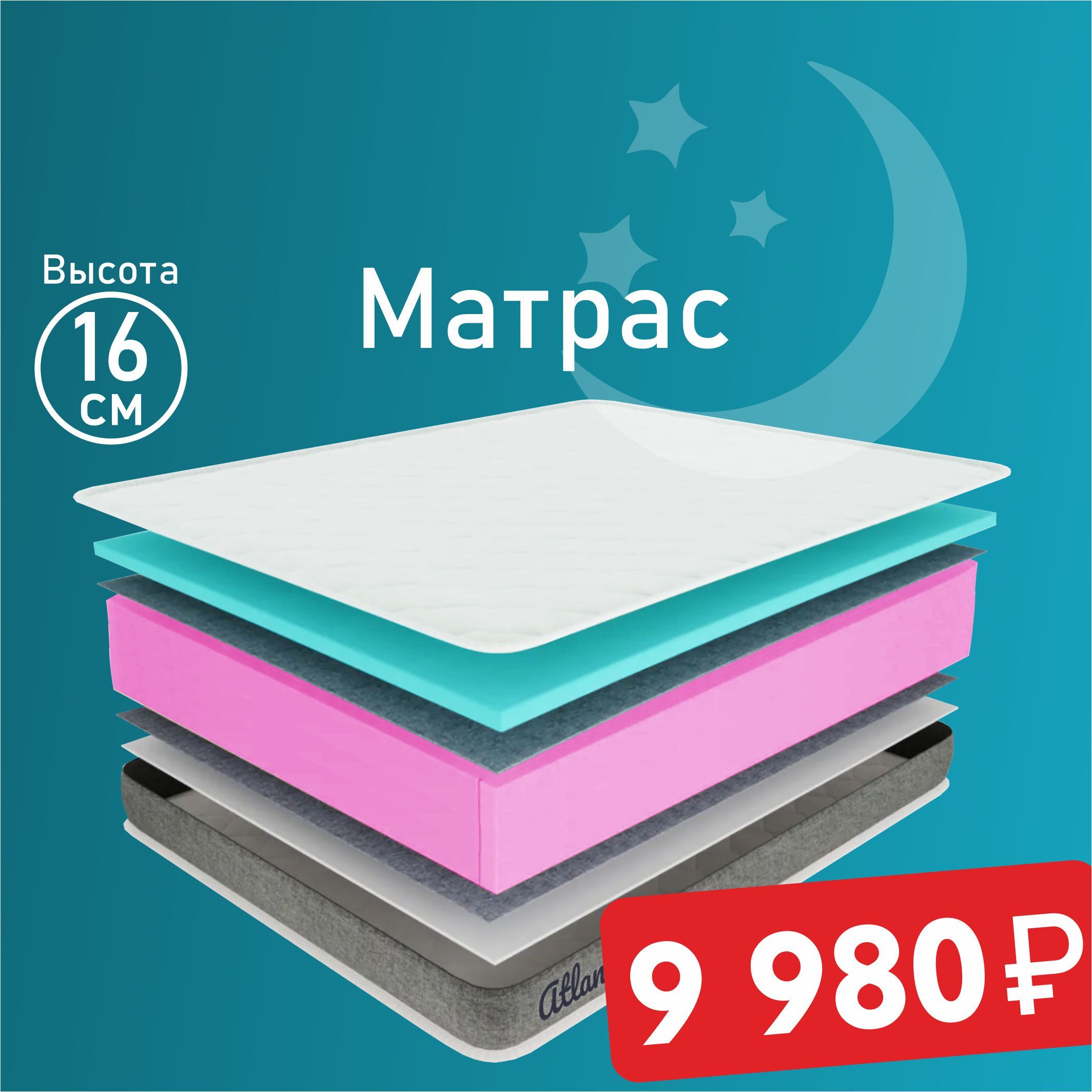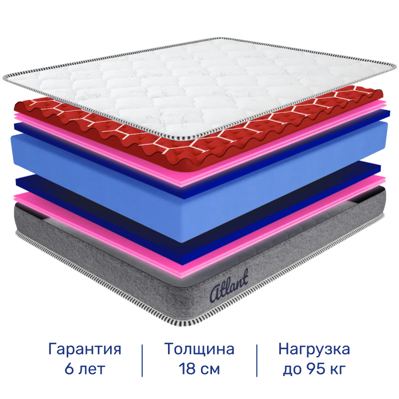 Матрас, Ортопедический матрас Nebula Atlant Molli 160*200, Независимые пружины, 160х200 см