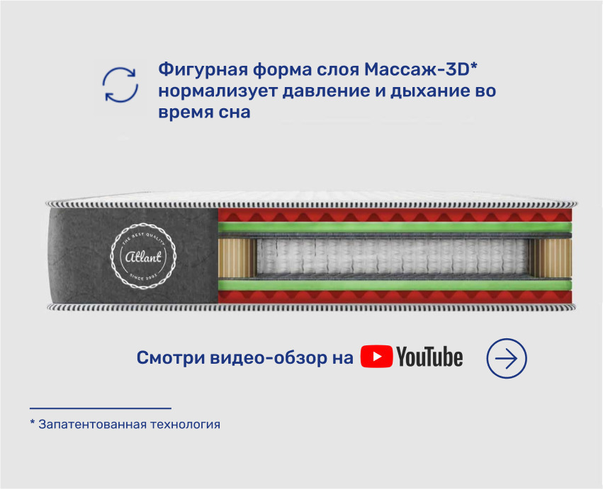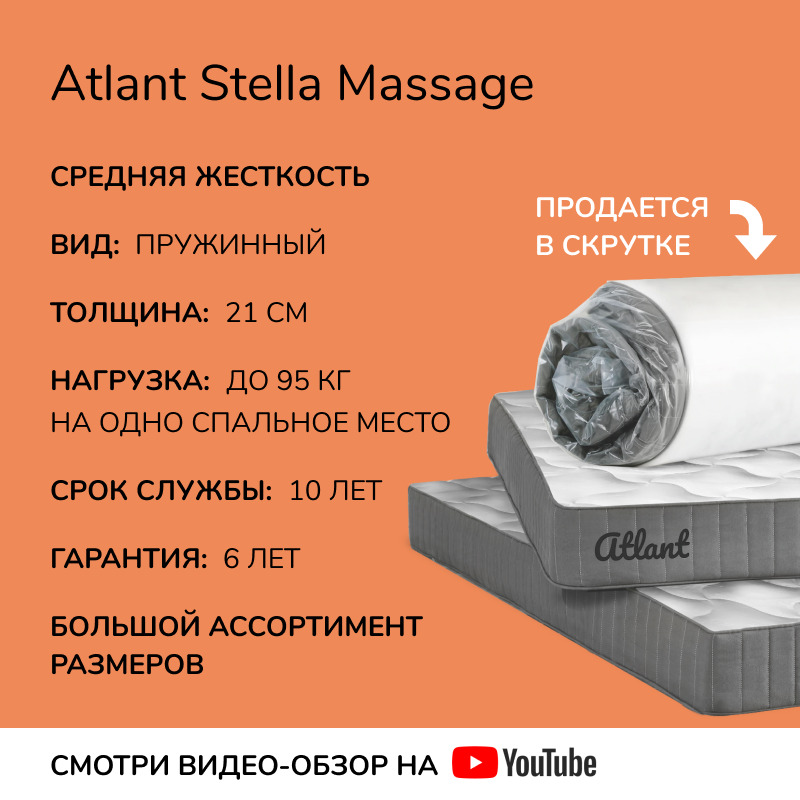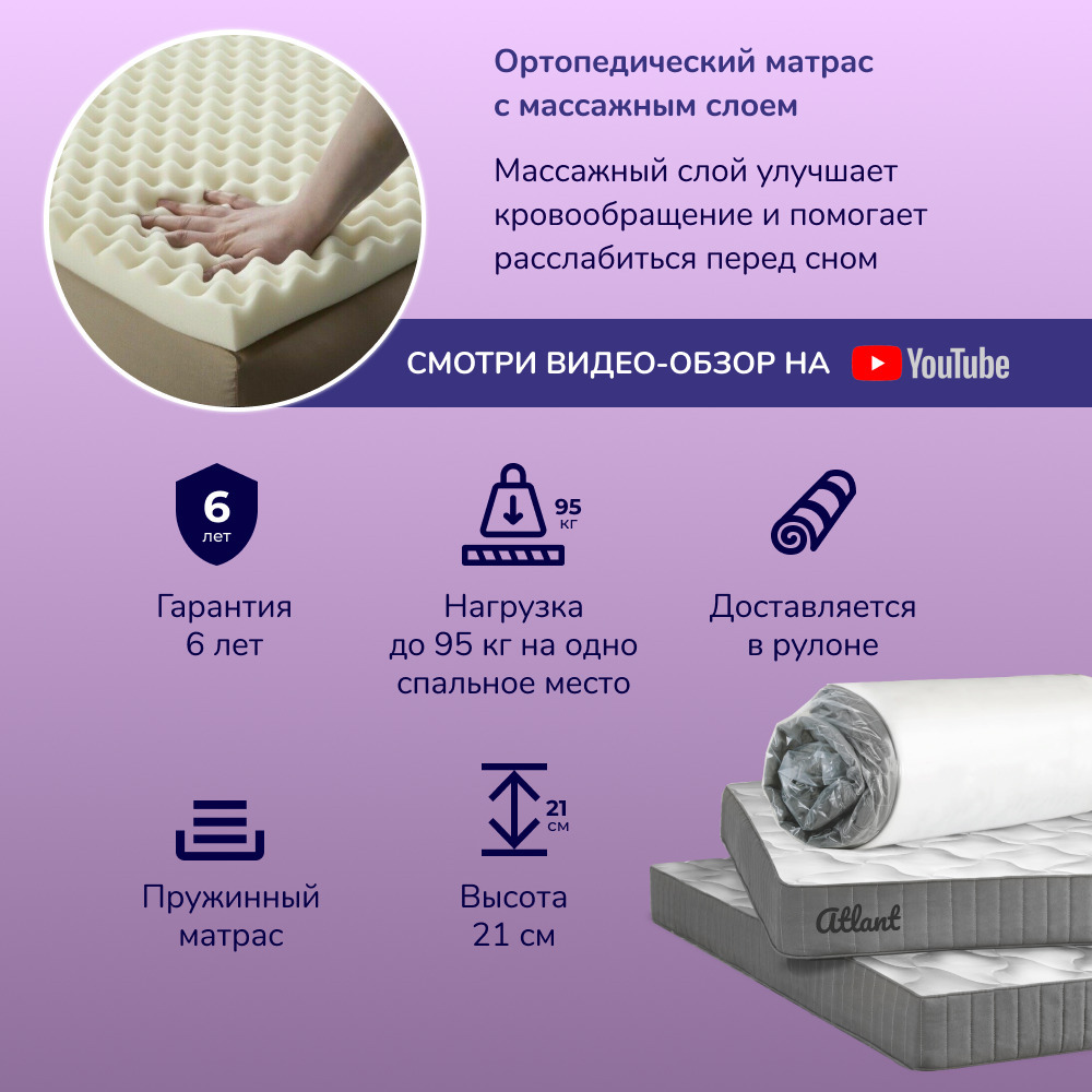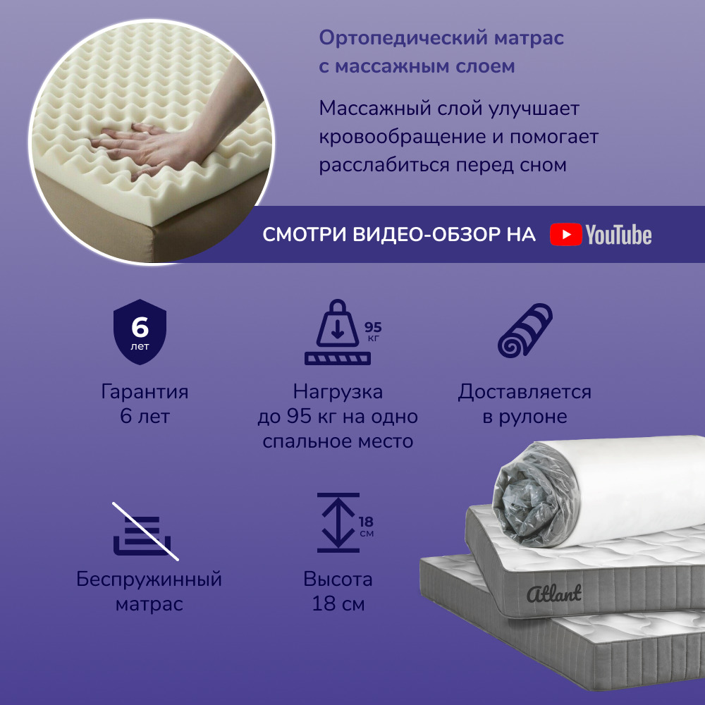 Матрас, Ортопедический матрас Nebula Atlant Stat Massage 90*190, Независимые пружины, 90х190 см