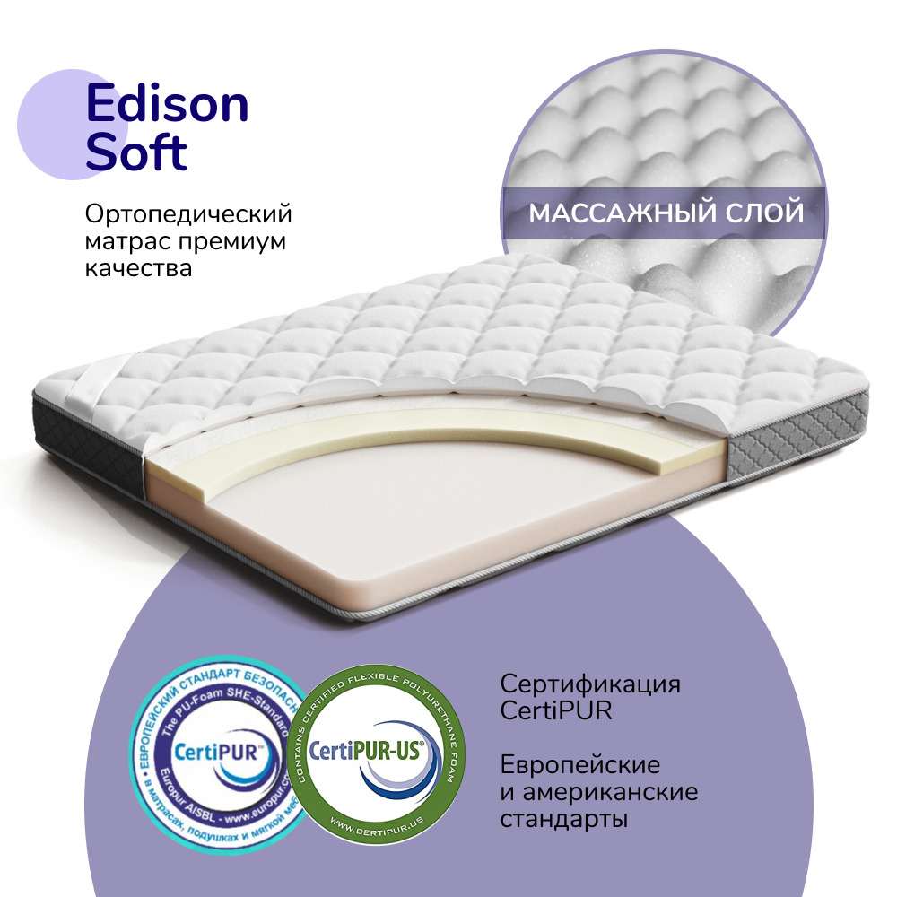 Матрас, Ортопедический матрас Nebula Atlant Edison Soft 70*190, Беспружинный, 70х190 см