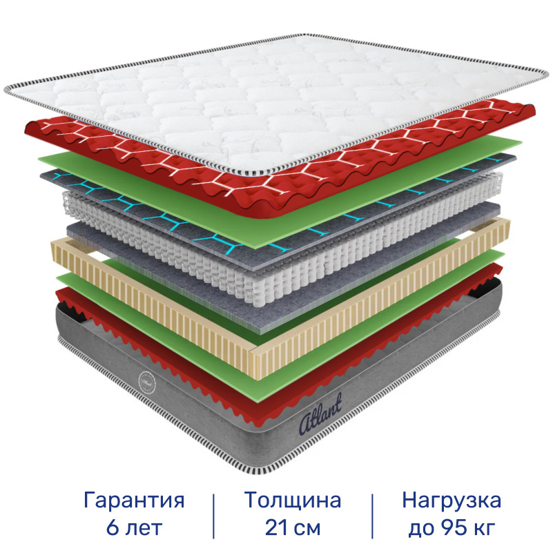 Матрас, Ортопедический матрас Nebula Atlant Trinity X 80*200, Независимые пружины, 80х200 см
