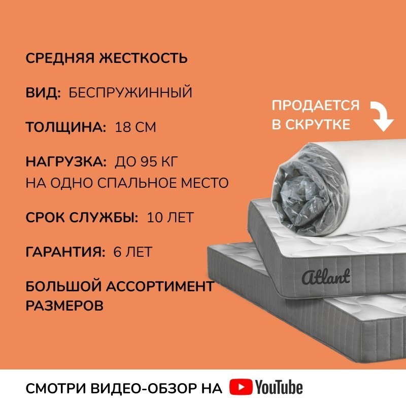 Матрас, Ортопедический матрас Nebula Atlant Panda-1 90*200, Беспружинный, 90х200 см