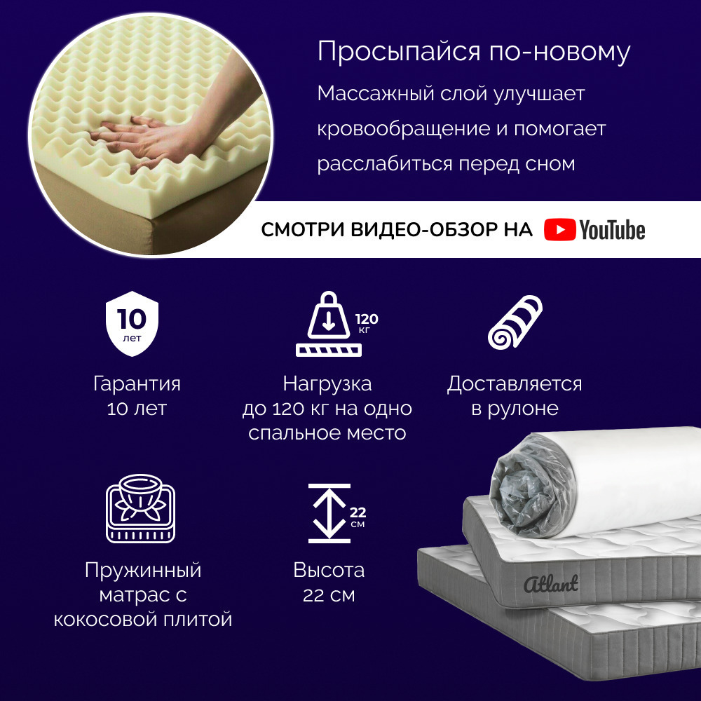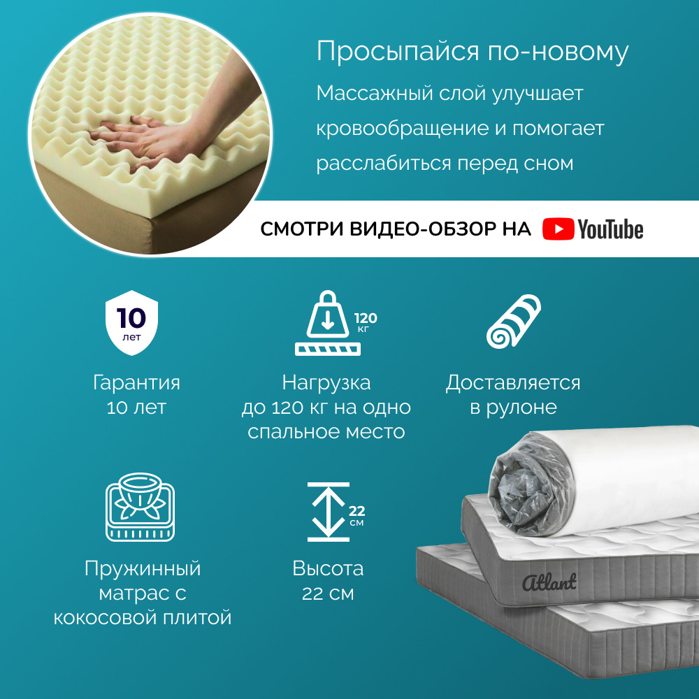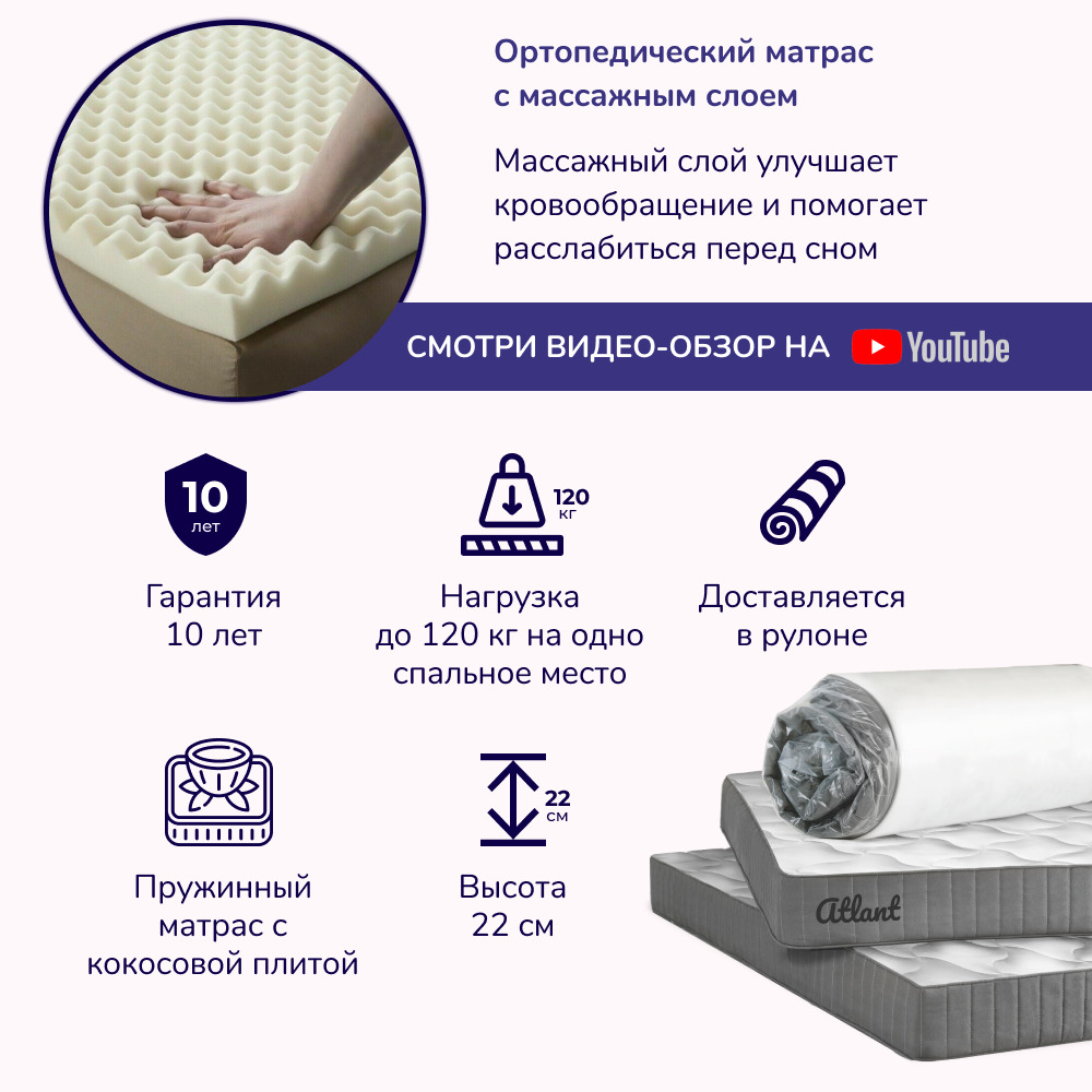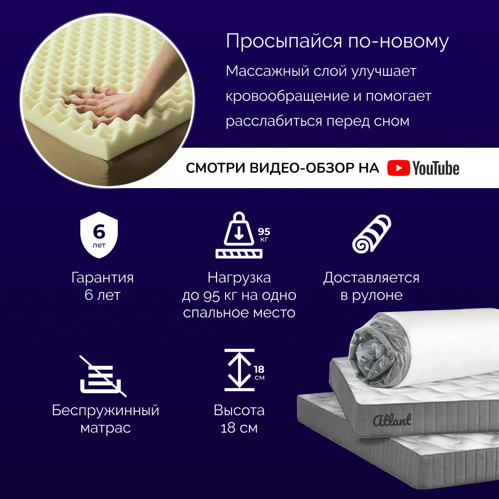 Матрас, Ортопедический матрас Nebula Atlant Benefit Massage 160*200, Независимые пружины, 160х200 см