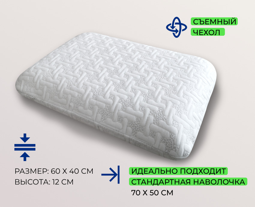 Анатомическая подушка, Ортопедическая подушка 40x60см, Nebula Green Leathery, высота 12 см