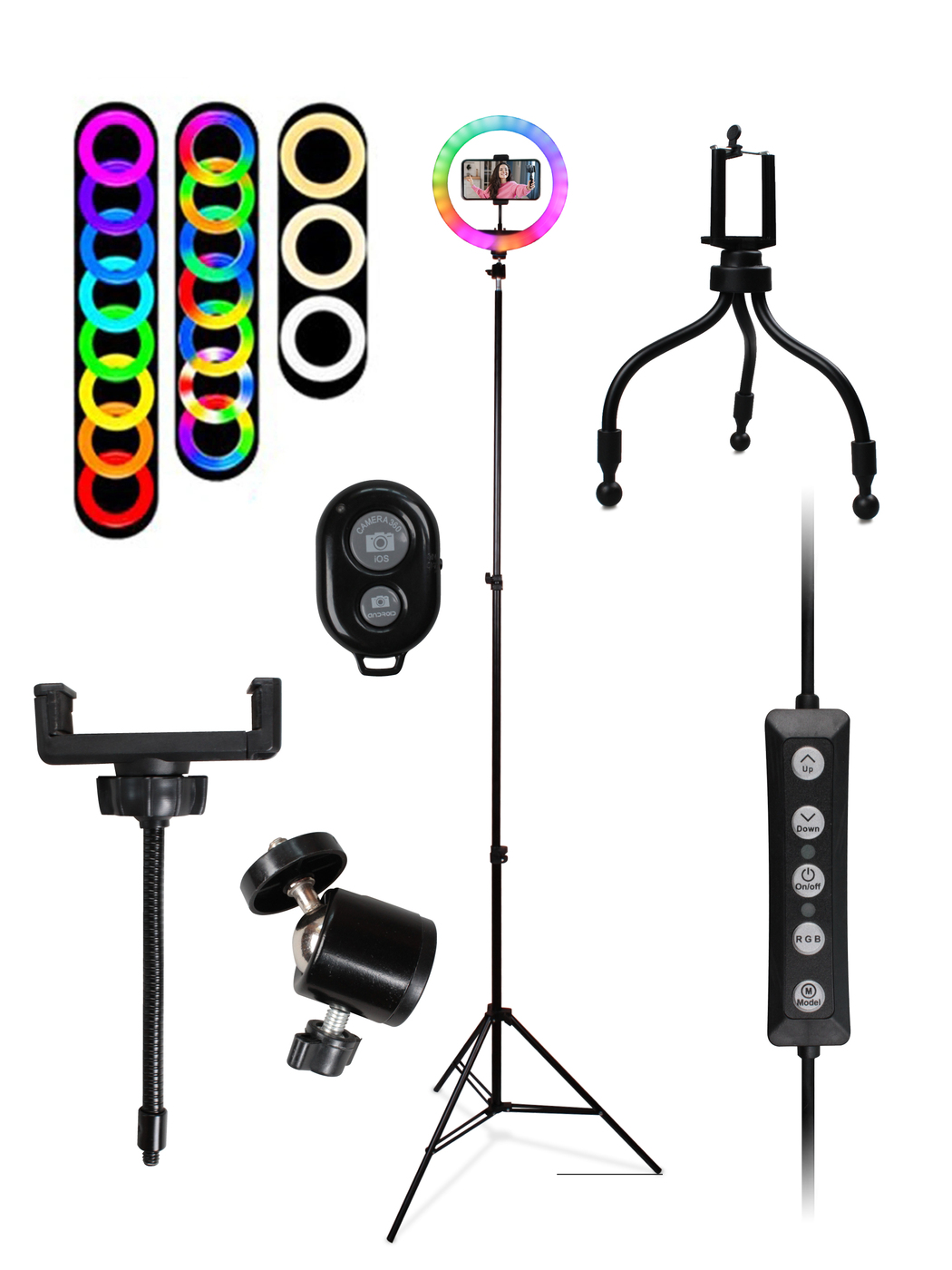 Кольцевая лампа RGB 26см с штативом 2,1м, 18 режима света, 7 режимов мощности