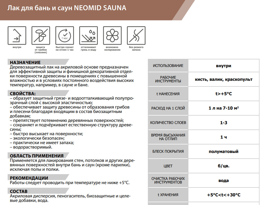 Неомид sauna (2,5 л) - лак акриловый для бань и саун