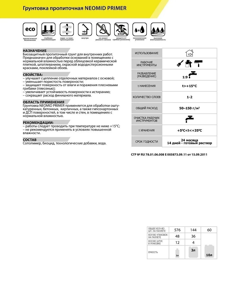 Грунтовка Neomid PRIMER Влагозащитная, Пропиточная 10 л