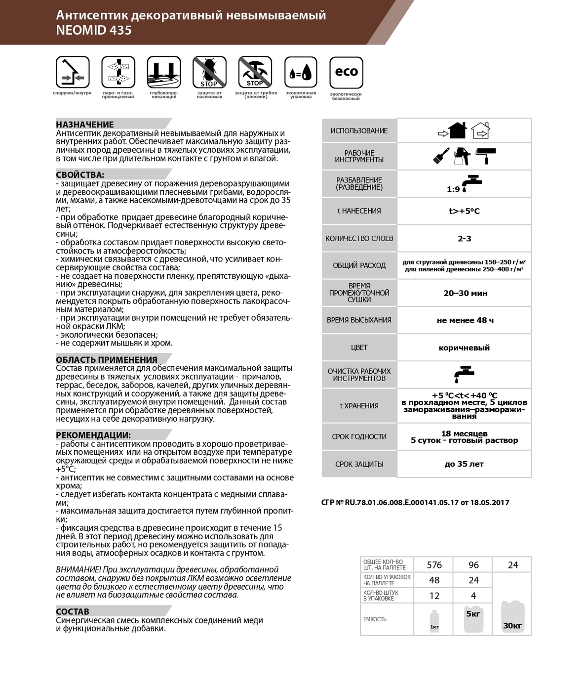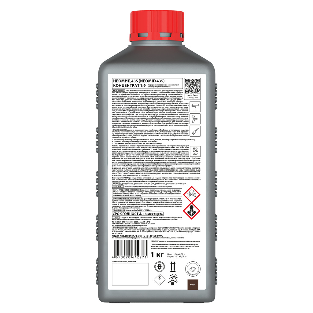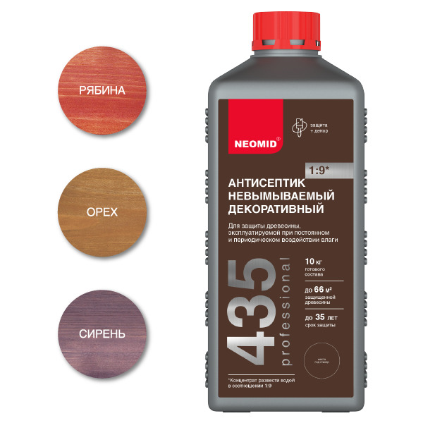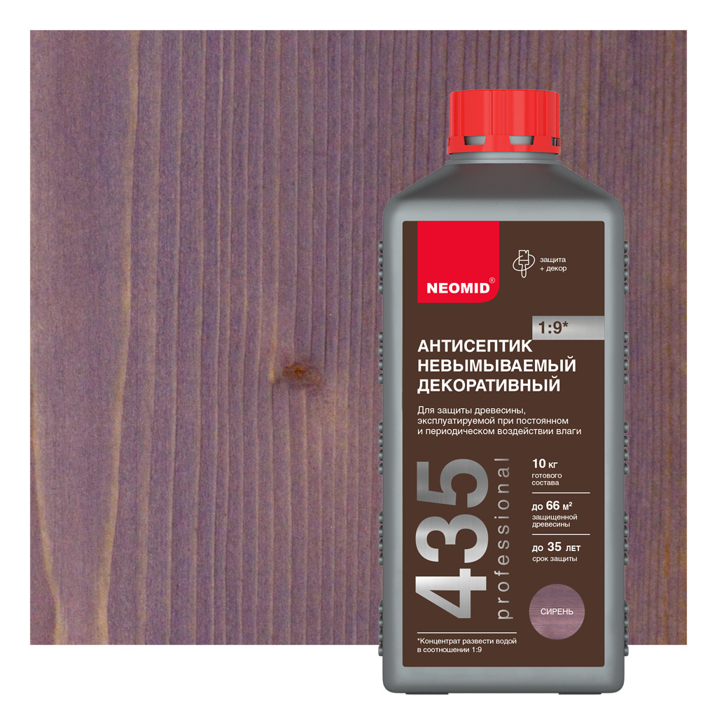 Финишный декоративный невымываемый антисептик NEOMID 435 ECO концентрат 1:9, сирень 1 кг