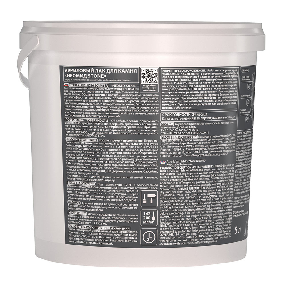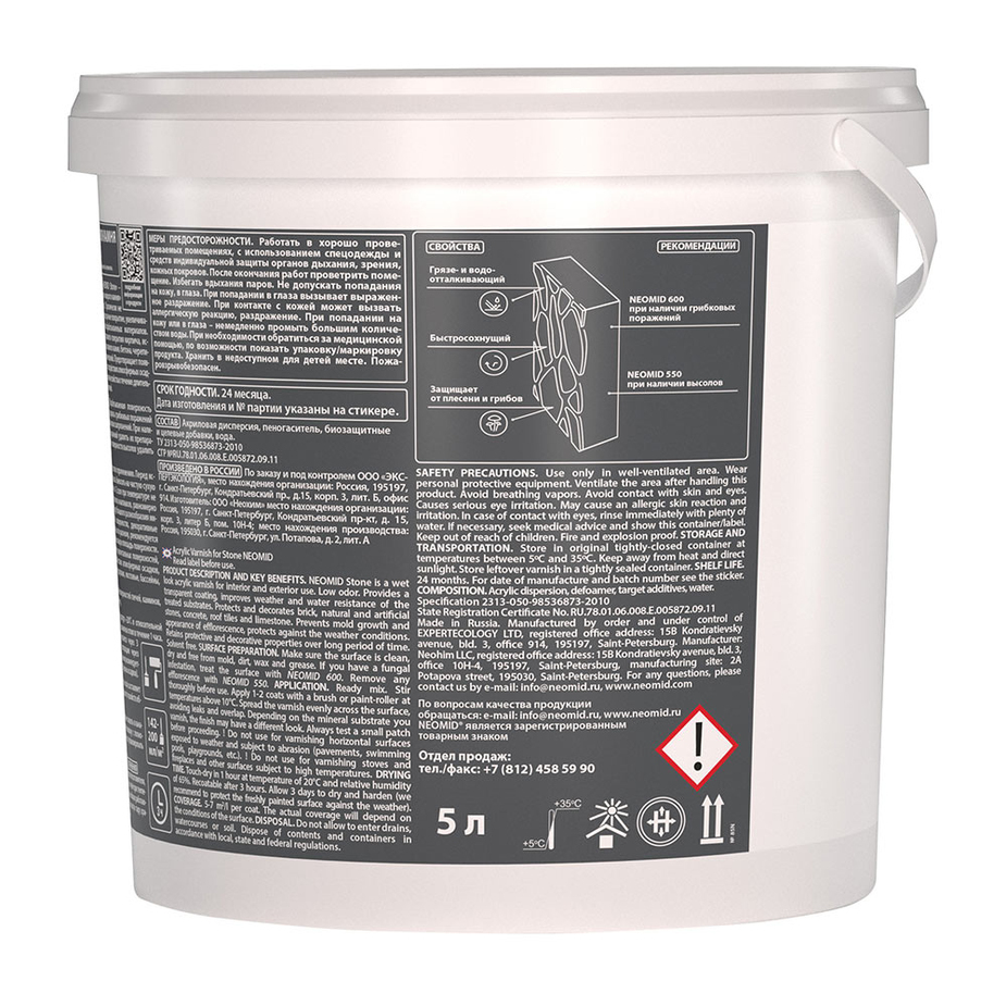 Лак акриловый для камня Neomid Stone бесцветный 5 л полуглянцевый