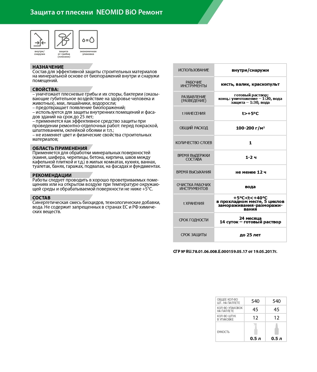 НЕОМИД 600 готовый раствор против плесени 500 мл набор из двух спреев