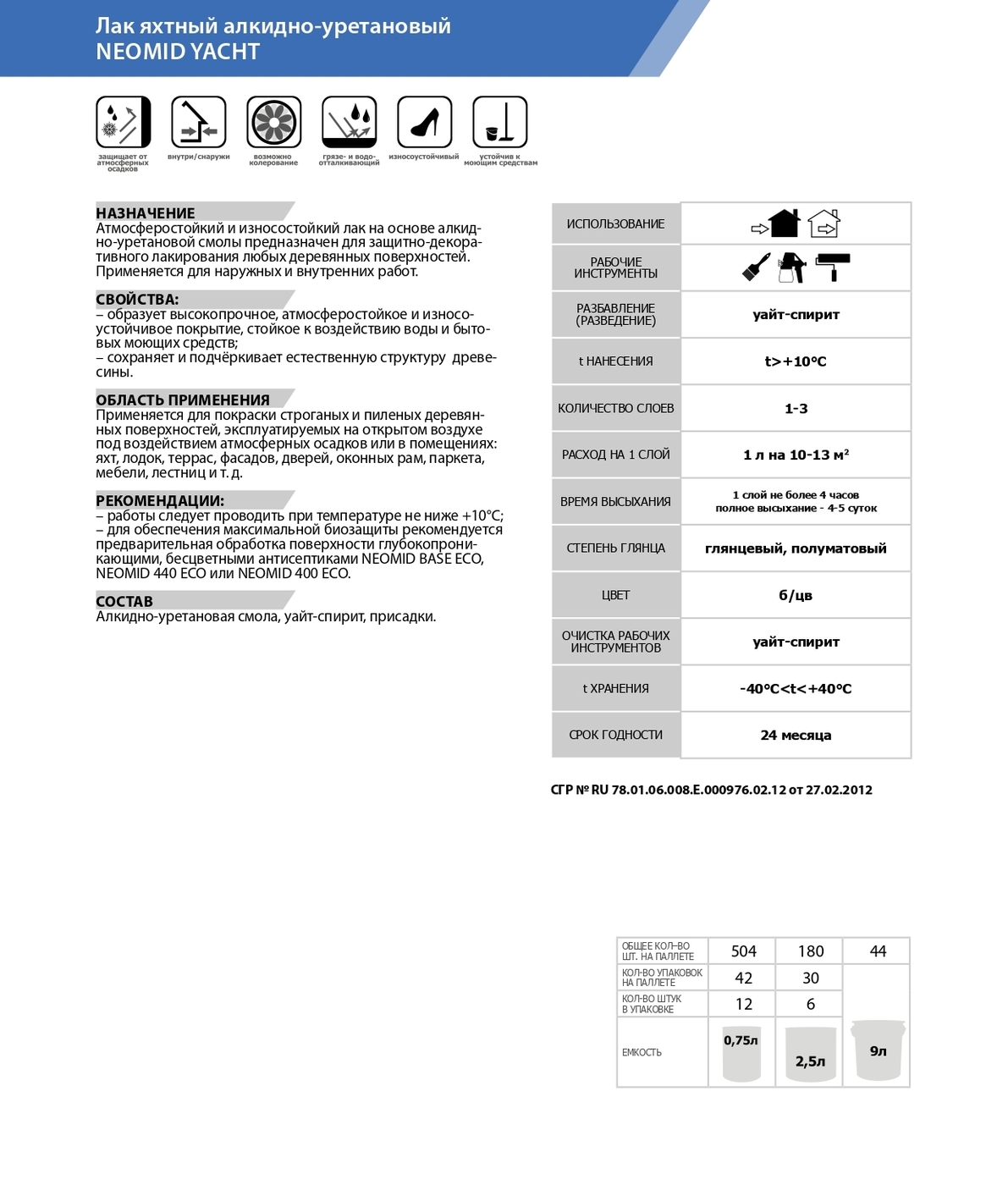 Лак яхтный Neomid, глянцевый, алкидно-уретановый, 9 л