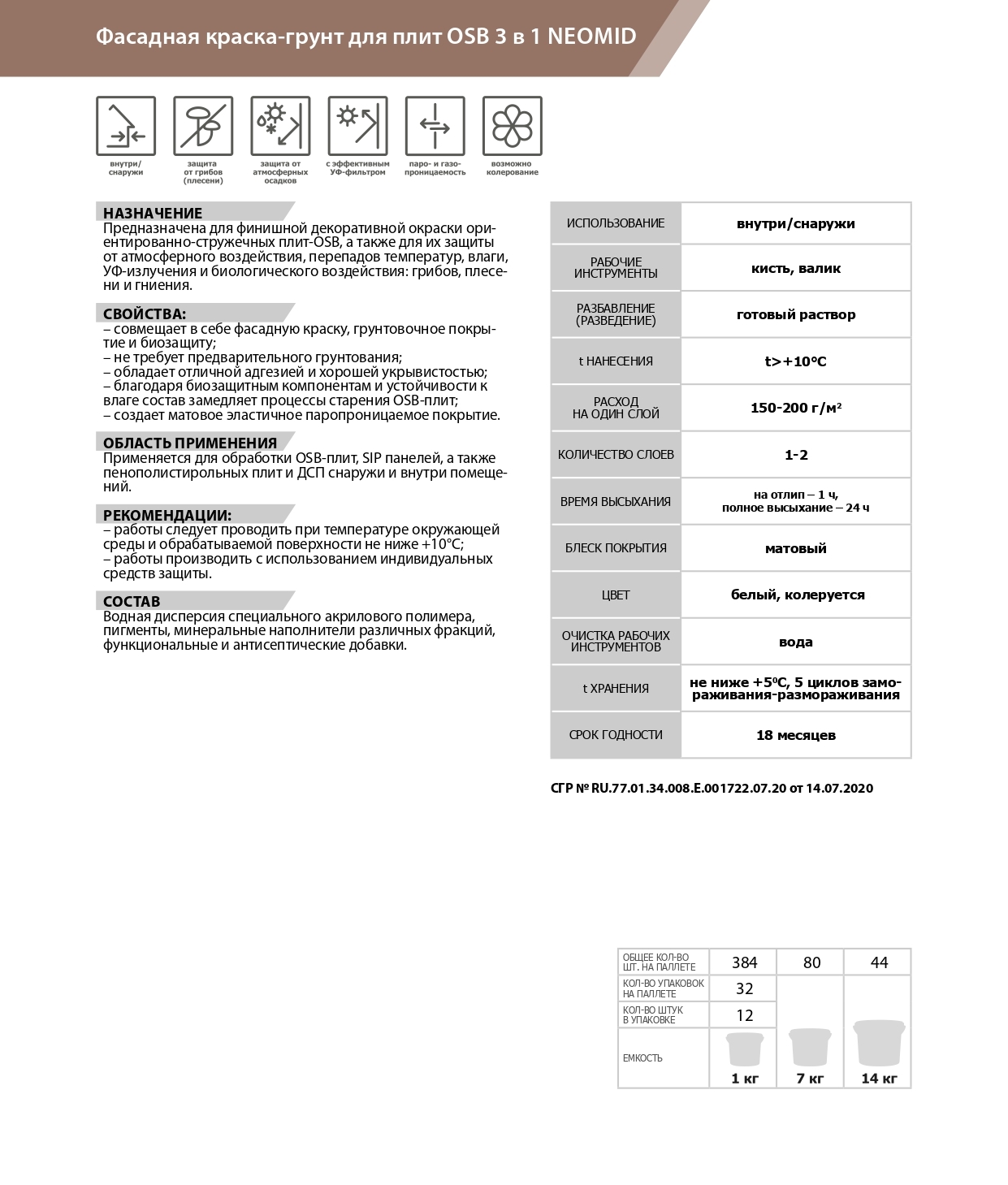 Краска Neomid, Шелковисто-матовое покрытие, 7 кг, белый