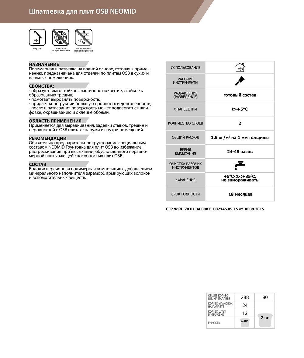 Неомид Шпатлевка для плит OSB ( 1,3 кг)