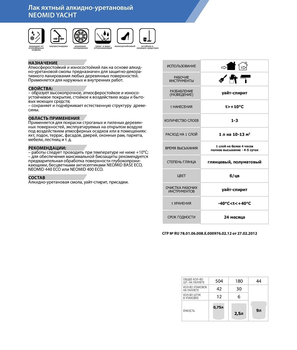 Лак яхтный Neomid Yacht алкидно-уретановый полуматовый (0,75 л)