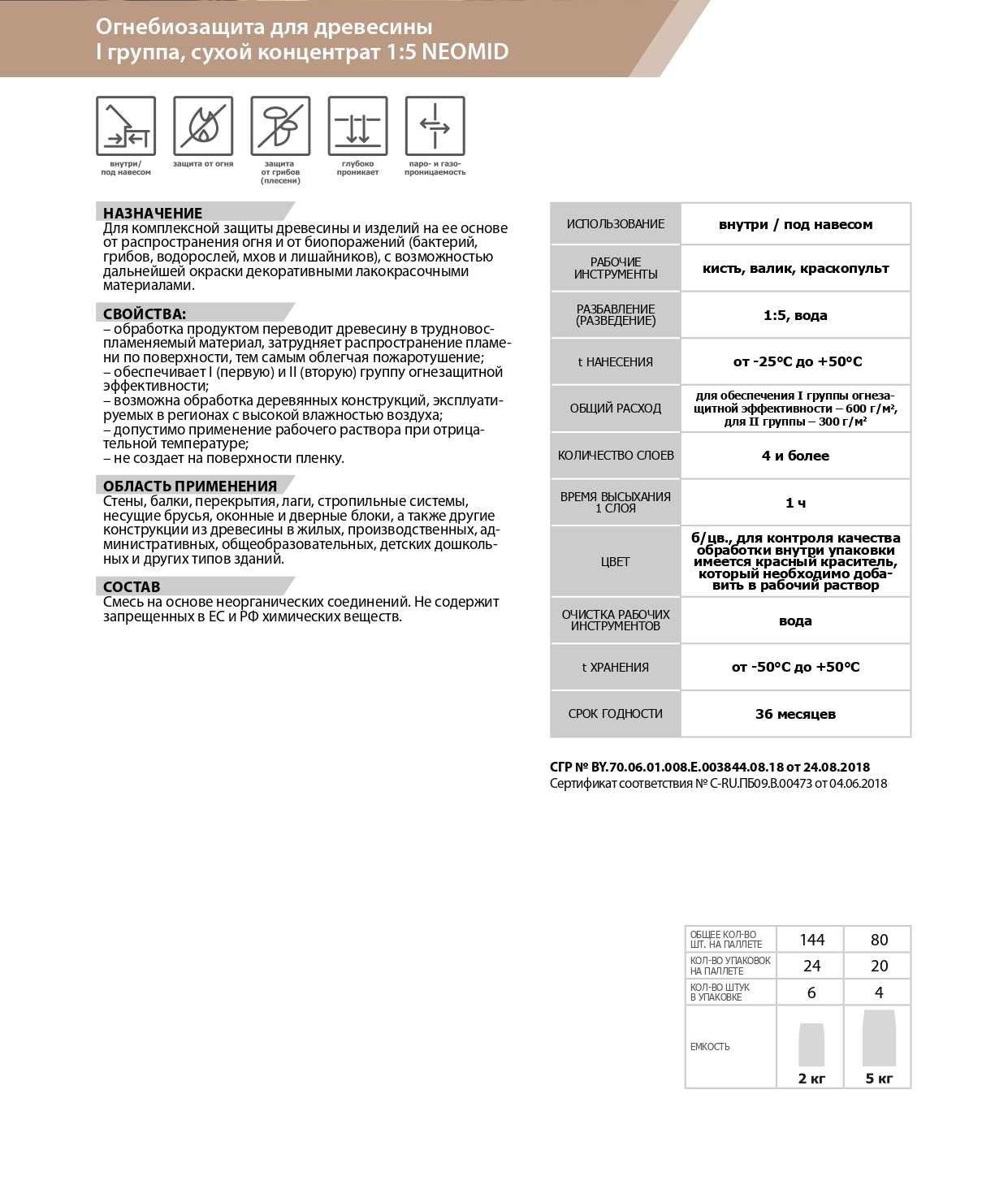 Огнебиозащита 1 группа NEOMID, сухой концентрат 1:5 , 2 кг