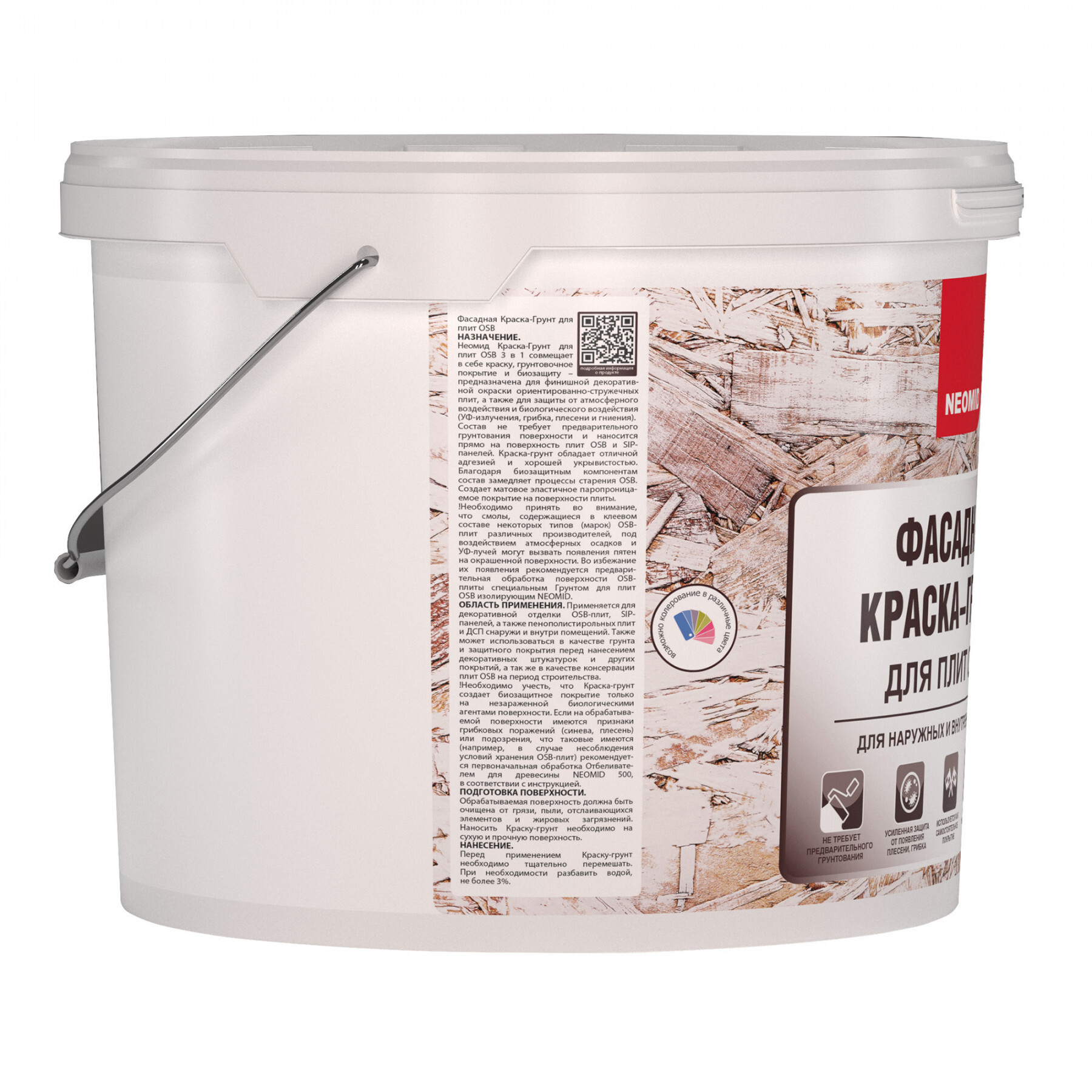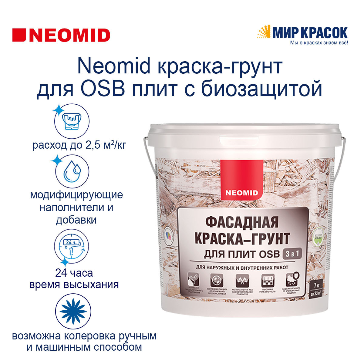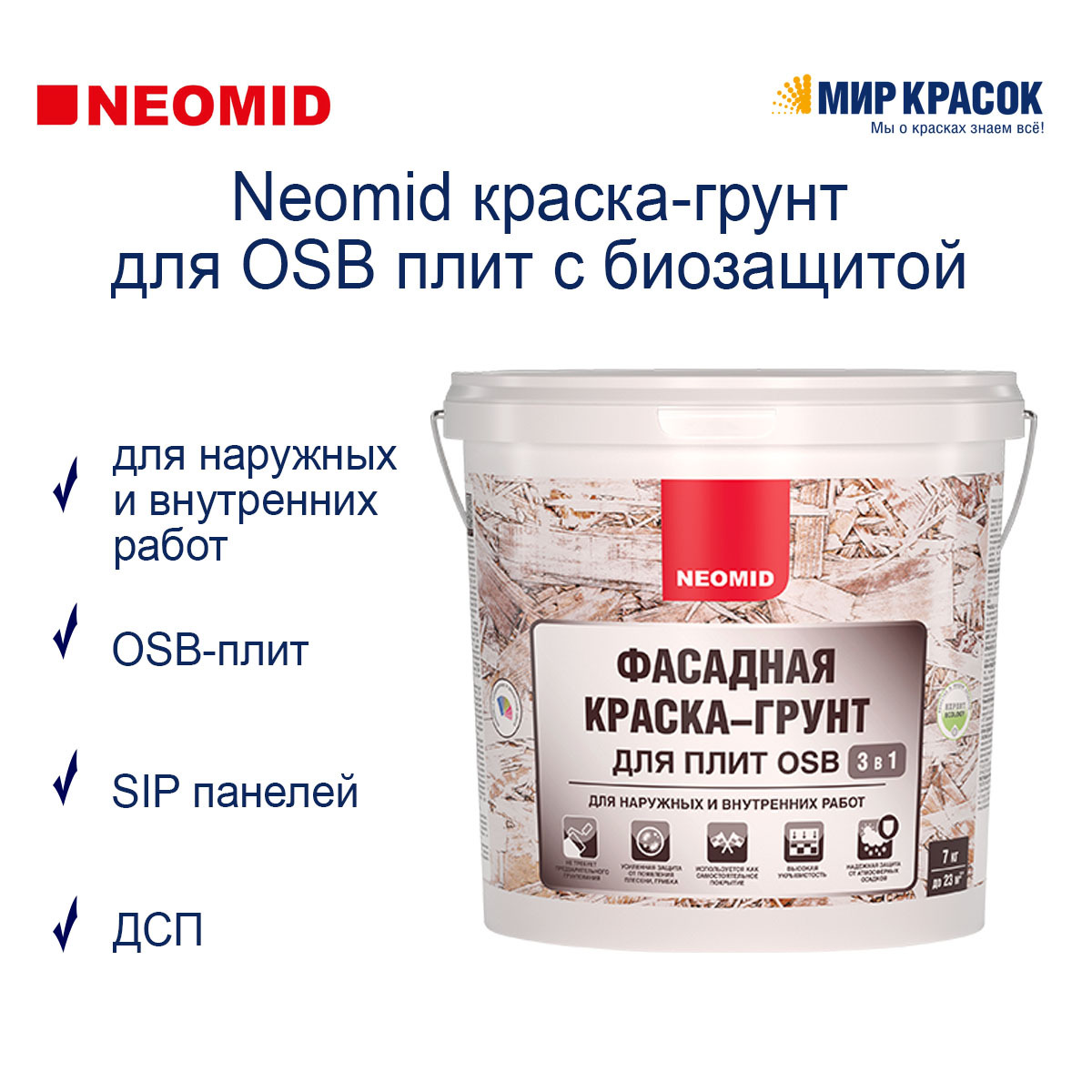 Краска Neomid Для OSB-плит Гладкая, Акриловая, Полуматовое покрытие, 7 кг, белый