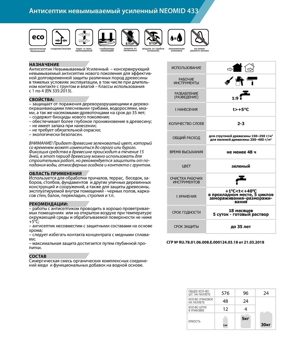 Строительный антисептик Neomid 433 Глубокого проникновения 5 кг