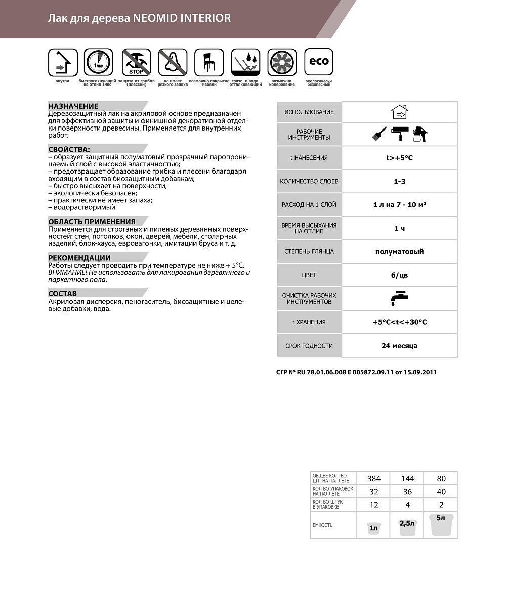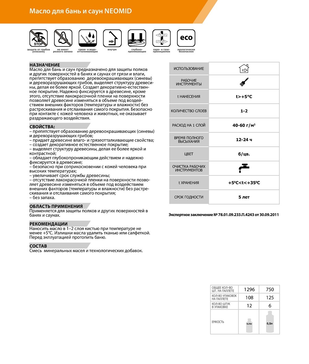 ЛАК ДЛЯ БАНЬ И САУН NEOMID SAUNA, 2,5л до 25м2