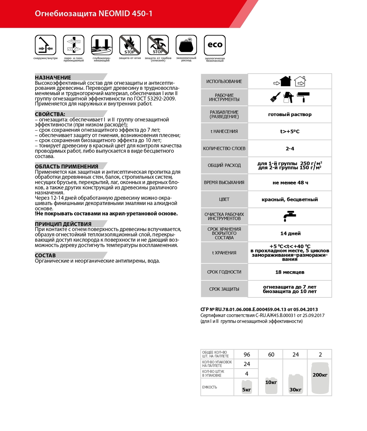 Огнебиозащита для дерева Neomid 450 - I группа, тонированный, 10 кг