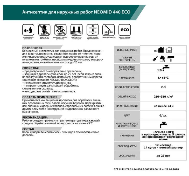 Строительный антисептик Neomid Трудновымываемый 10 л