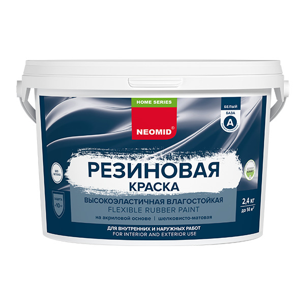 Краска Neomid Резиновая1 Резиновая, Шелковисто-матовое покрытие, 2.4 кг, белый