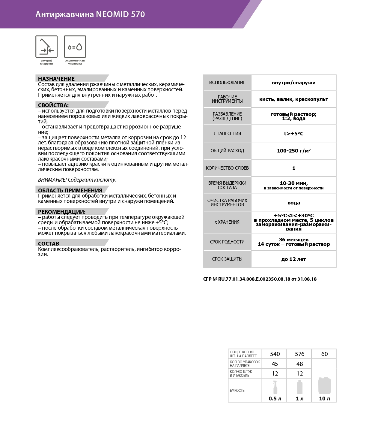 Очиститель строительный, Состав для удаления ржавчины Neomid 1 л, 1 шт