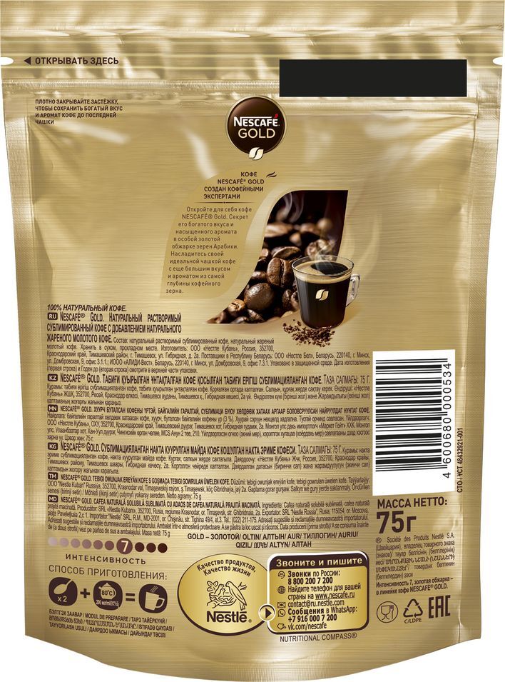 Кофе растворимый Nescafe Gold Barista сублимированный, 75 г