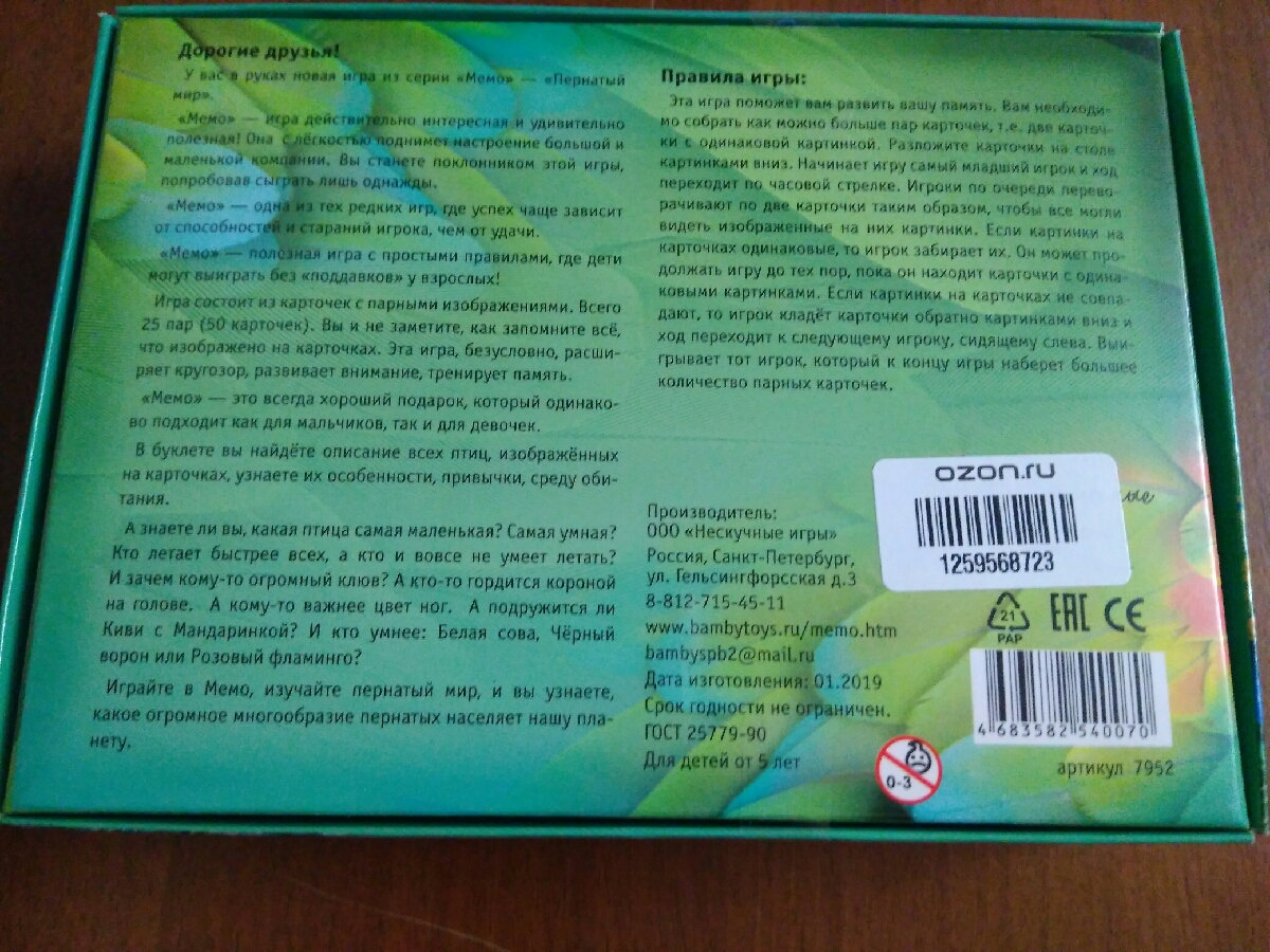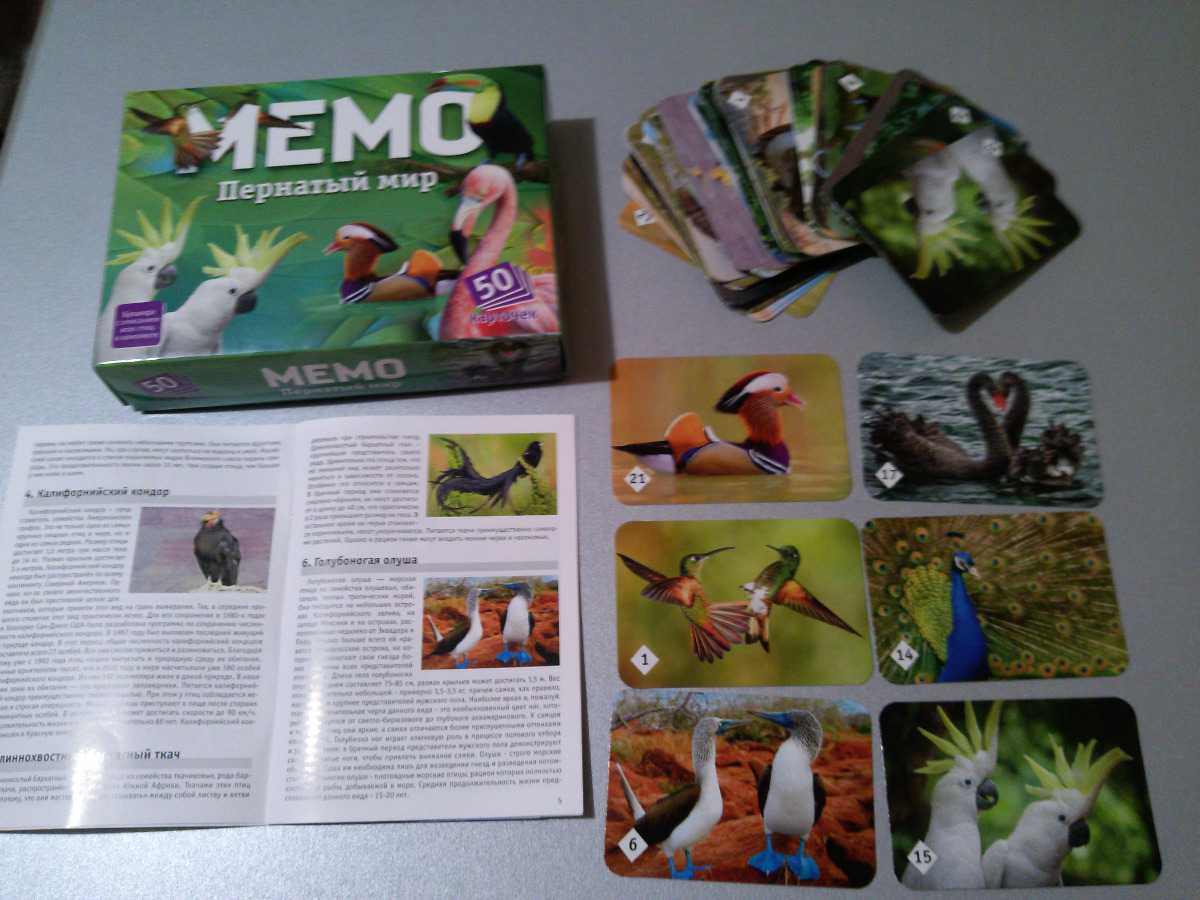 Игра карточная Нескучные игры Мемо Пернатый мир, с книжкой
