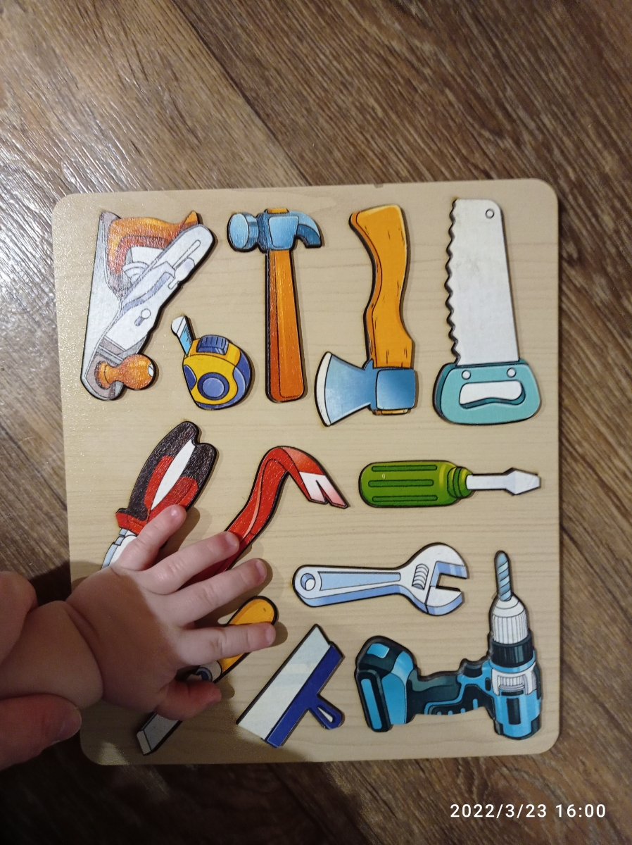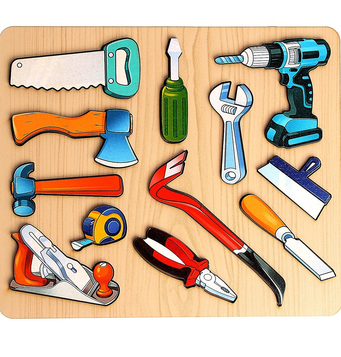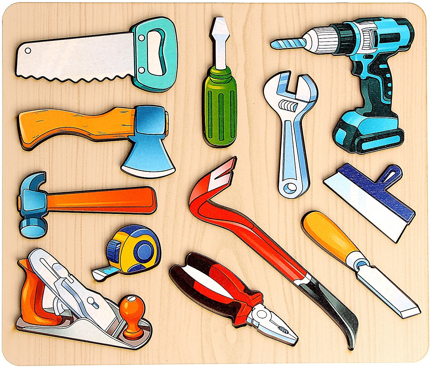 Деревянная рамка-вкладыш "Инструменты", развивающая головоломка для детей, 12 деталей