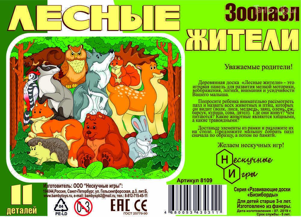 Рамка-вкладыш, деревянный пазл-головоломка "Лесные жители", зоопазл, 11 фигурок животных