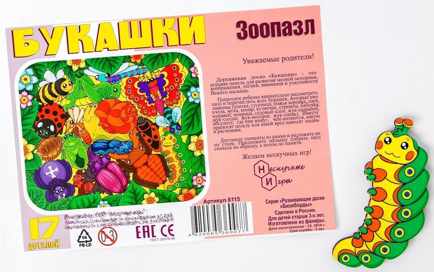 Рамка-вкладыш, деревянный пазл-головоломка "Букашки", зоопазл, 17 деревянных фигурок
